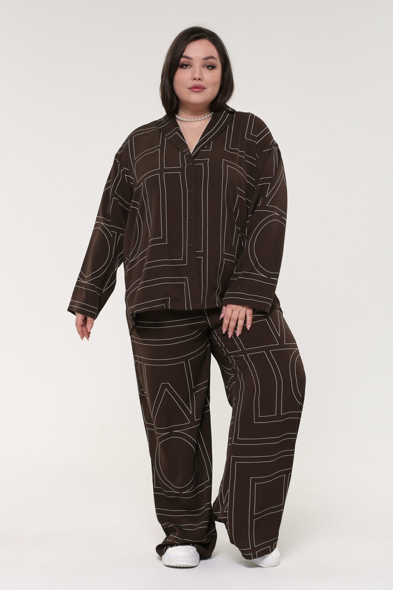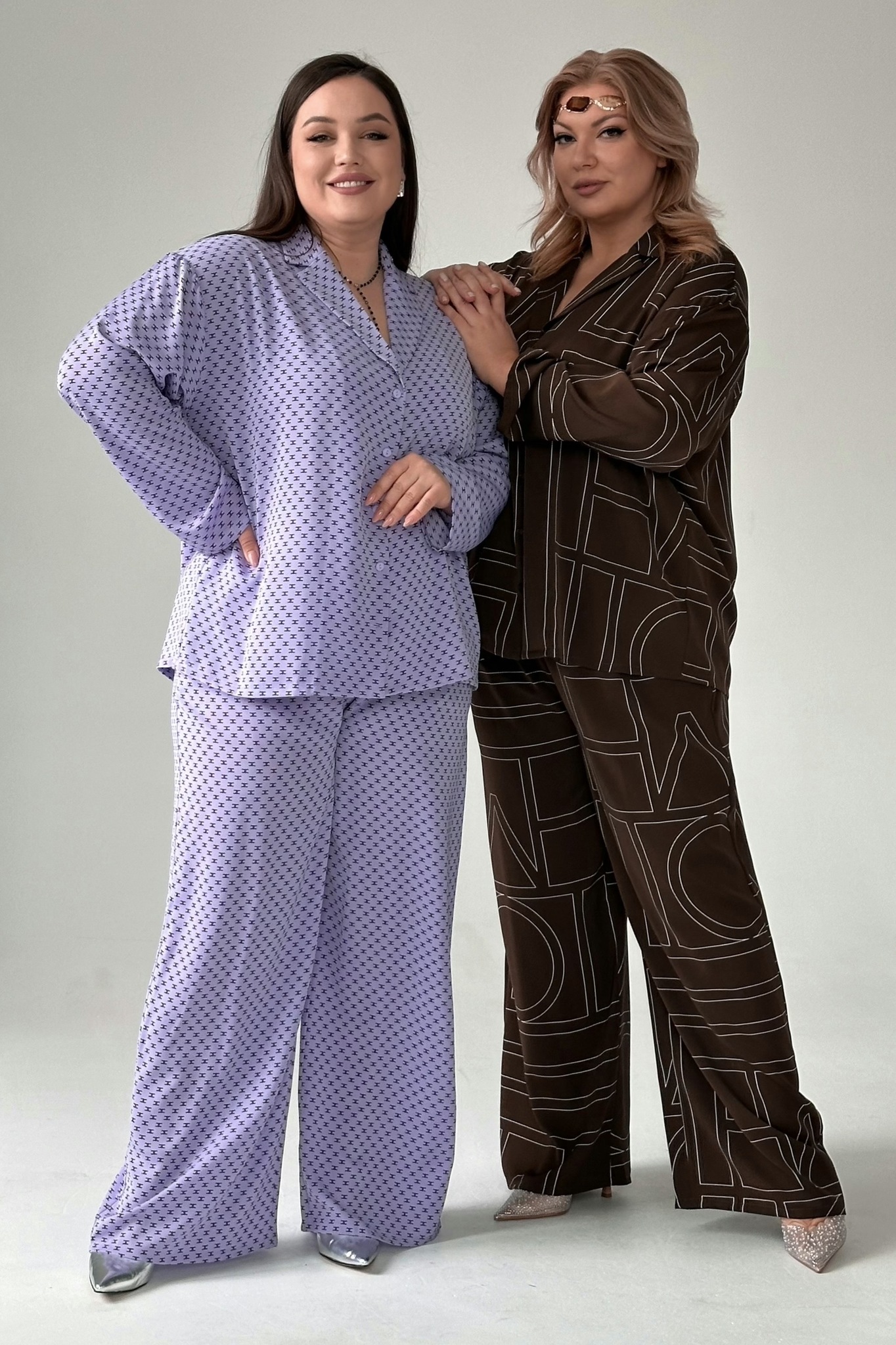 Костюм из мягкого струящегося материала состоит из удлиненной рубашки и брюк. материал устойчив к деформации и практически не мнется. удобные брюки-палаццо отлично сидят за счет широкой эластичной резинки на поясе. имеют завышенную линию талии. карманы по бокам добавляют практичности.