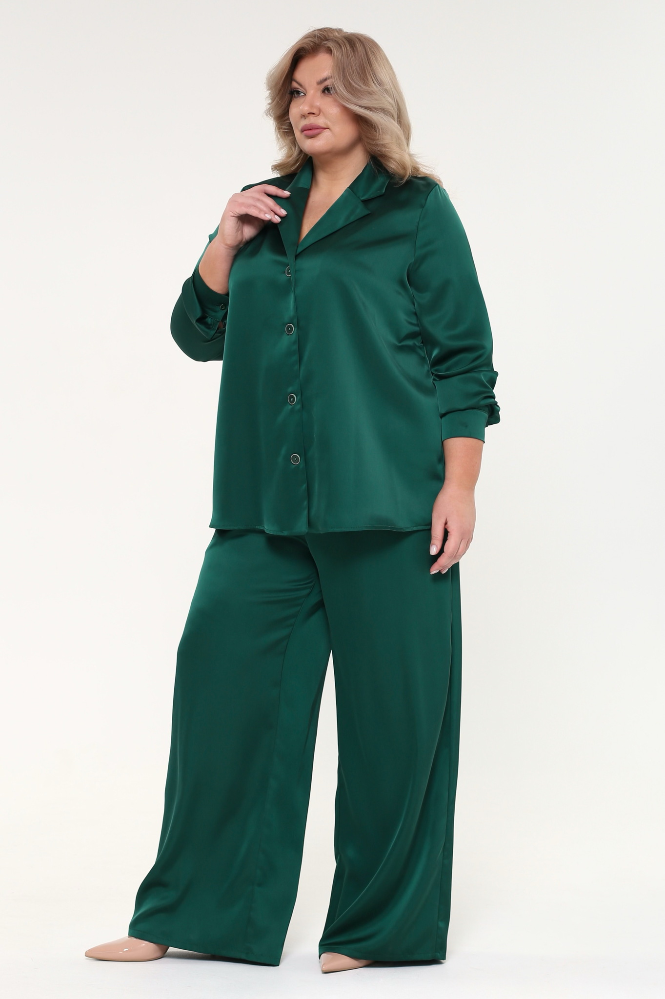Костюм из мягкого струящегося материала состоит из удлиненной рубашки и брюк. материал устойчив к деформации и практически не мнется. удобные брюки-палаццо отлично сидят за счет широкой эластичной резинки на поясе. имеют завышенную линию талии. карманы по бокам добавляют практичности.