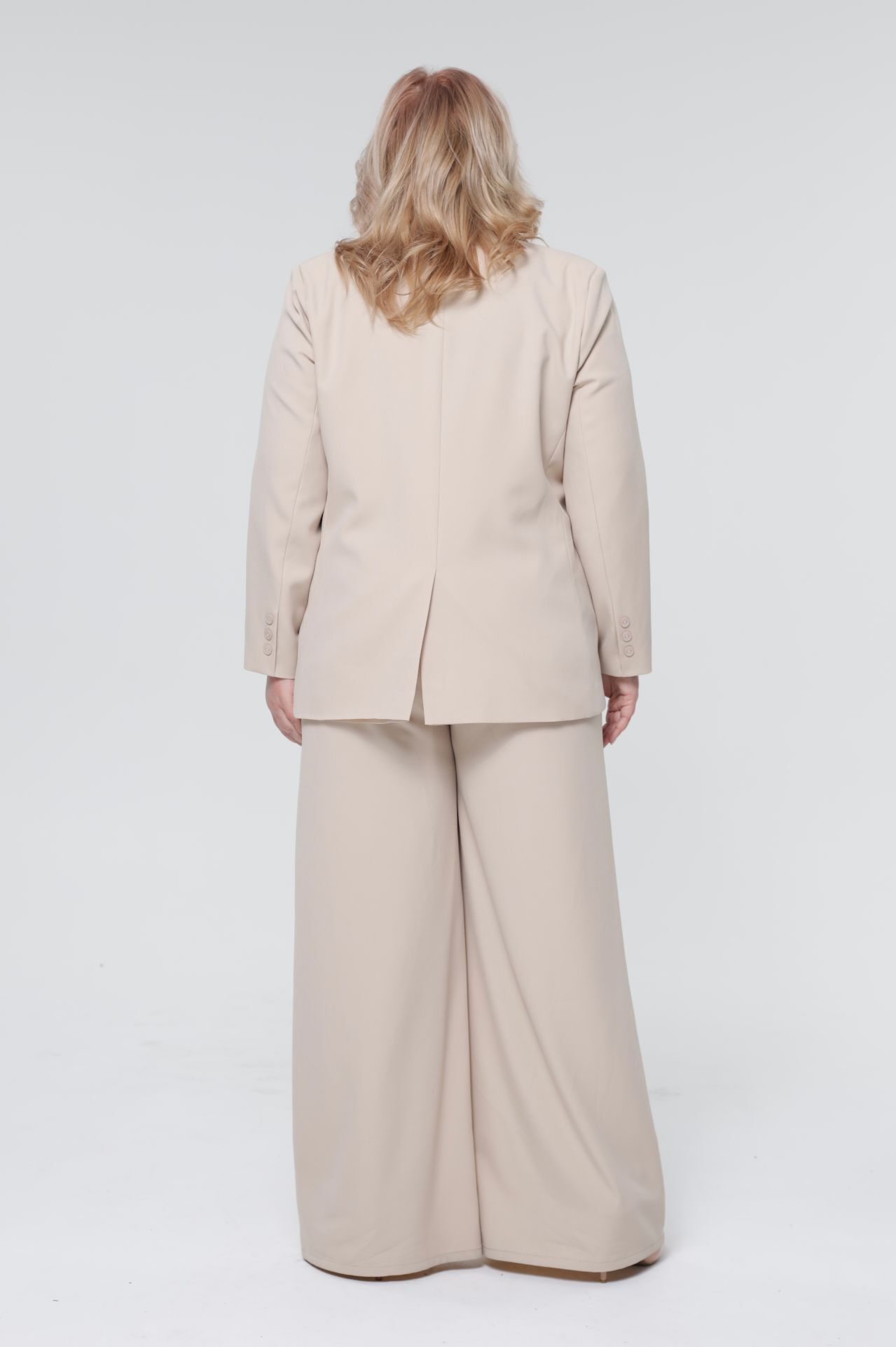 Элегантный костюм из мягкого материала состоит из жакета и брюк.