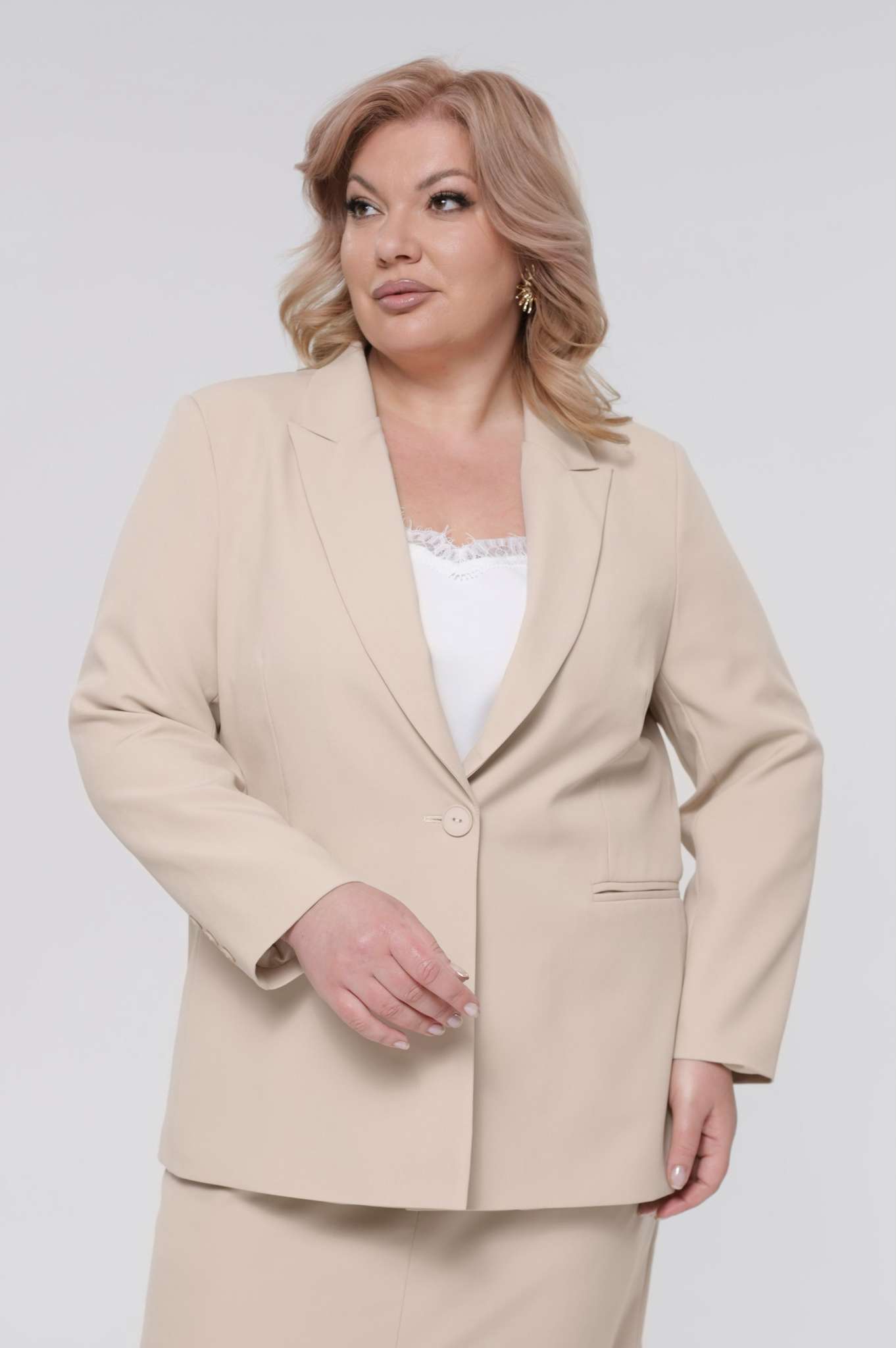 Жакет прямого кроя на подкладке. v-образный вырез оформлен классическим отложным воротником с лацканами. имеет рукава полной длины. аккуратные подплечники зрительно вытягивают силуэт и делают бедра визуально у же. формирующие швы по переду и спинке способствуют оптимальной посадке по фигуре. модель застёгивается на оригинальную пуговку, что добавляет модели практичности и оригинальности. по бокам декоративные прорезные карманы