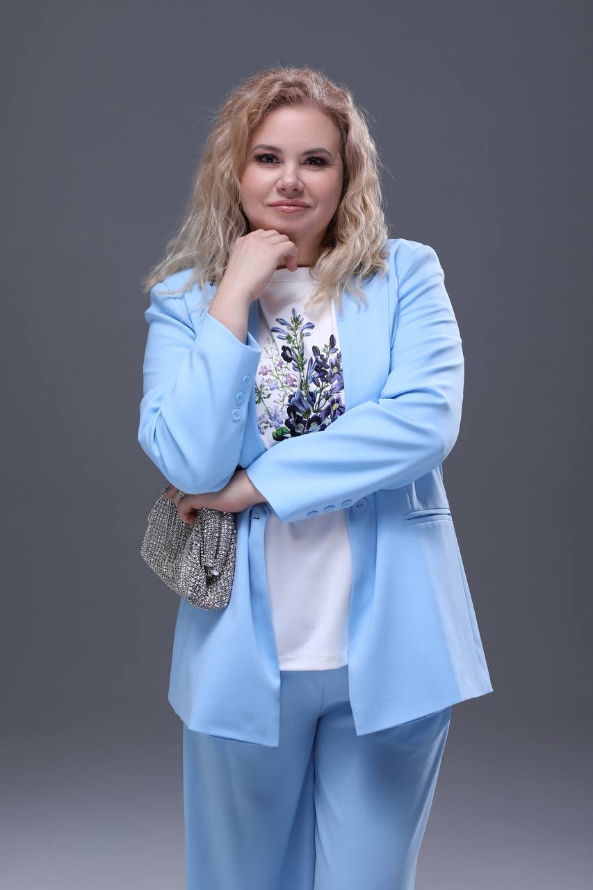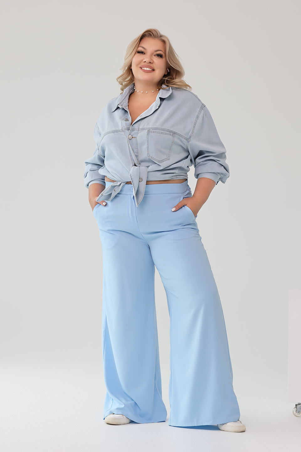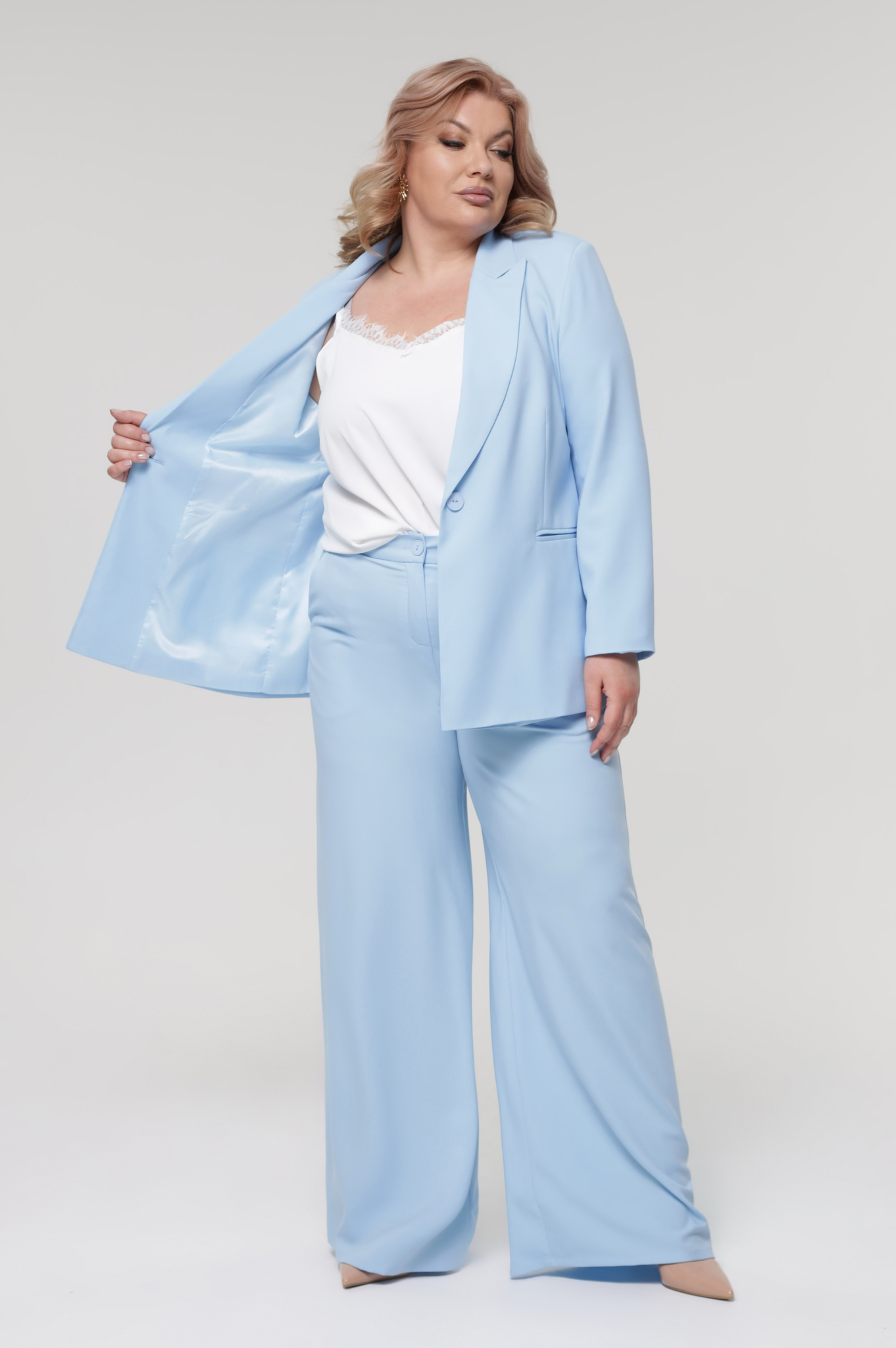 Костюм классика с прямыми брюками голубой