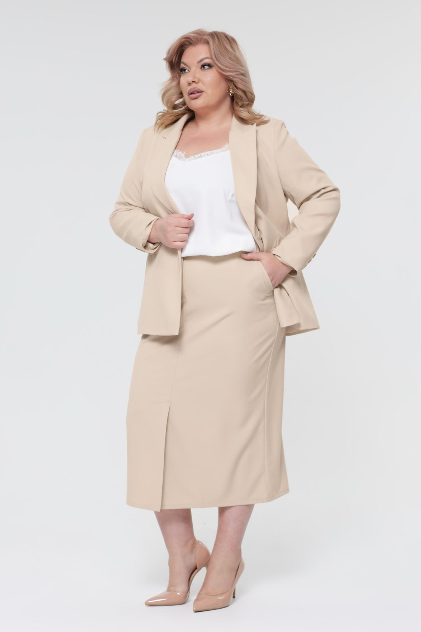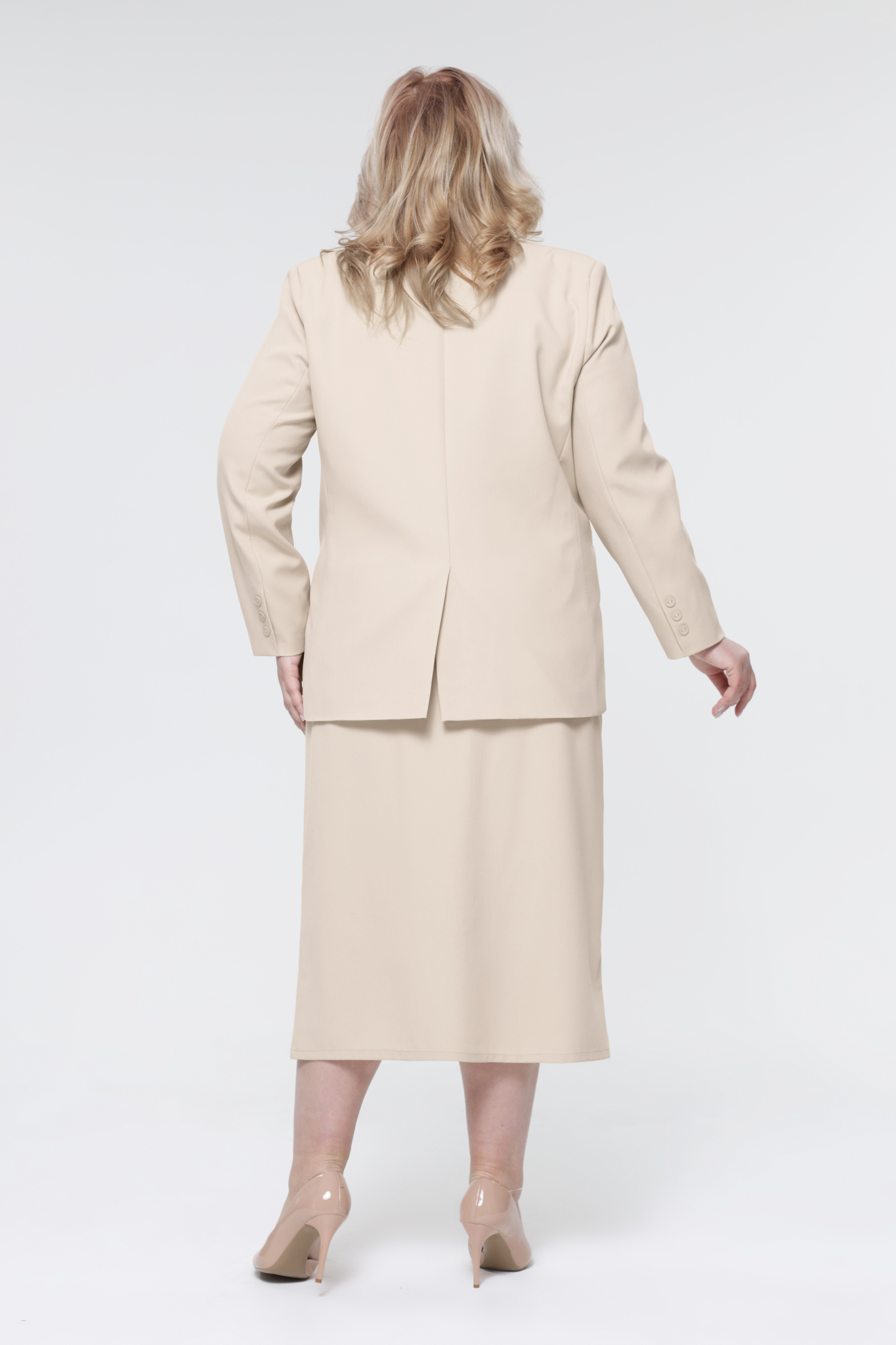 Элегантный костюм из мягкого материала состоит из жакета и юбки.