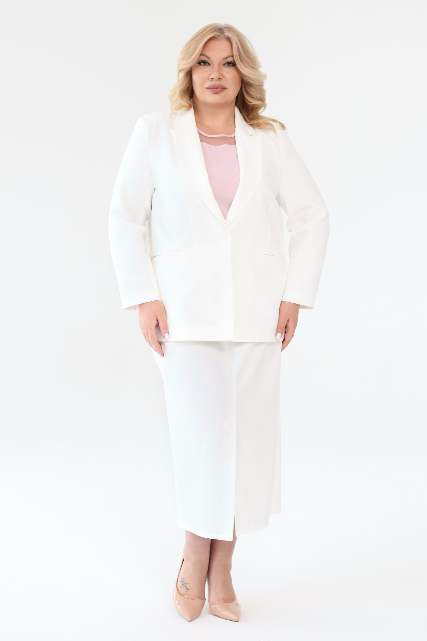 Элегантный костюм из мягкого материала состоит из жакета и юбки.