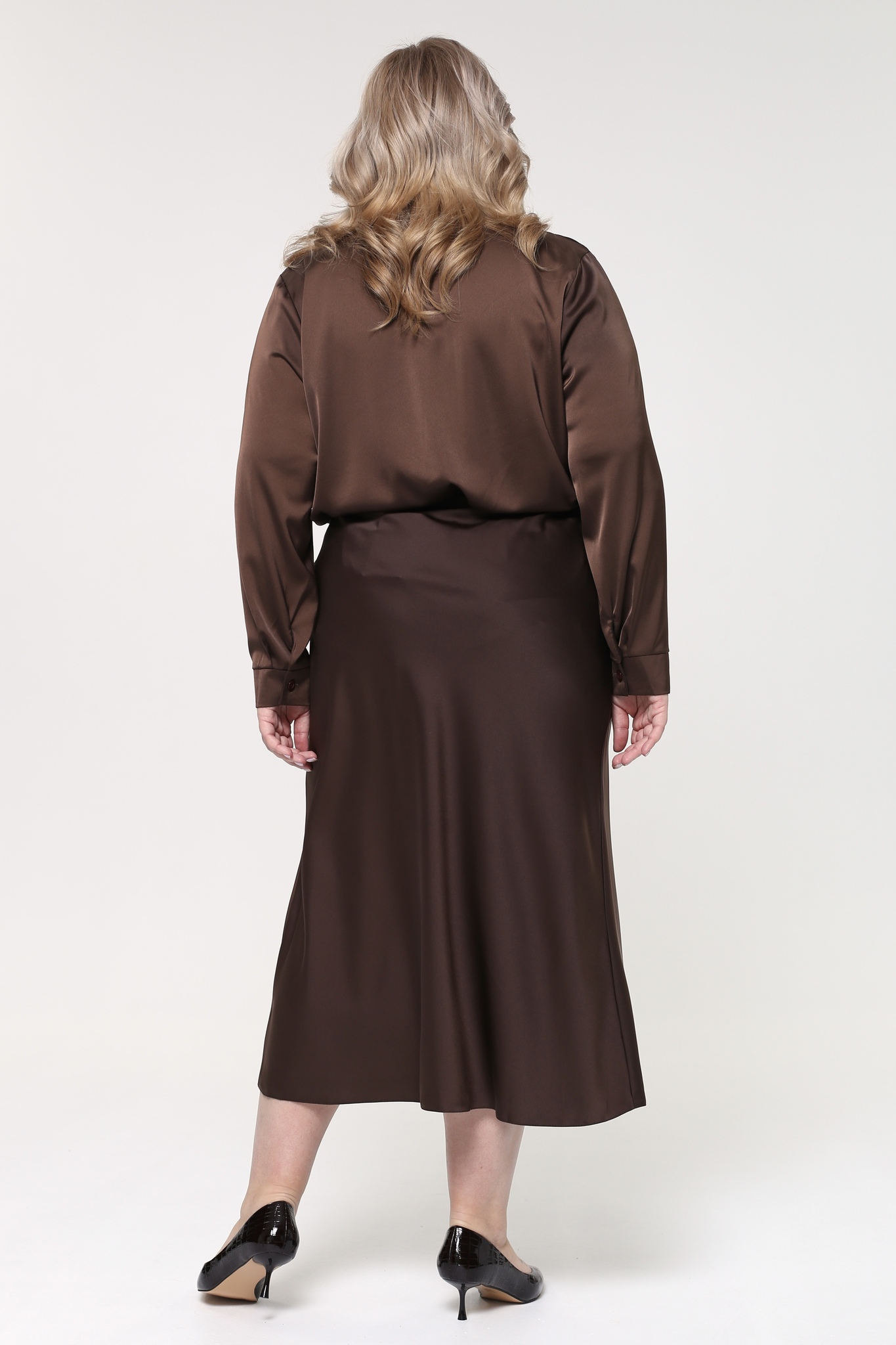 Стильный женский костюм из мягкого струящегося материала состоит из рубашки и юбки. удлиненная рубашка свободного кроя имеет классический отложной воротник. вытачки на груди и закругленные бока способствуют оптимальной посадке по фигуре. модель застегивается спереди под планку на пуговицы по всей длине. рукава полной длины с приспущенной проймой по низу оформлены манжетами с пуговками. юбка прямого силуэта виртуозно обыгрывает фигуру благодаря оригинальному крою модели. пояс на резинке способствует оптимальной посадке по фигуре. женственный костюм идеально подойдет для торжественных мероприятий разного характера. подчеркните лаконичность образа длинными серьгами и туфлями на высоких каблуках. элементы костюма можно также носить по отдельности.