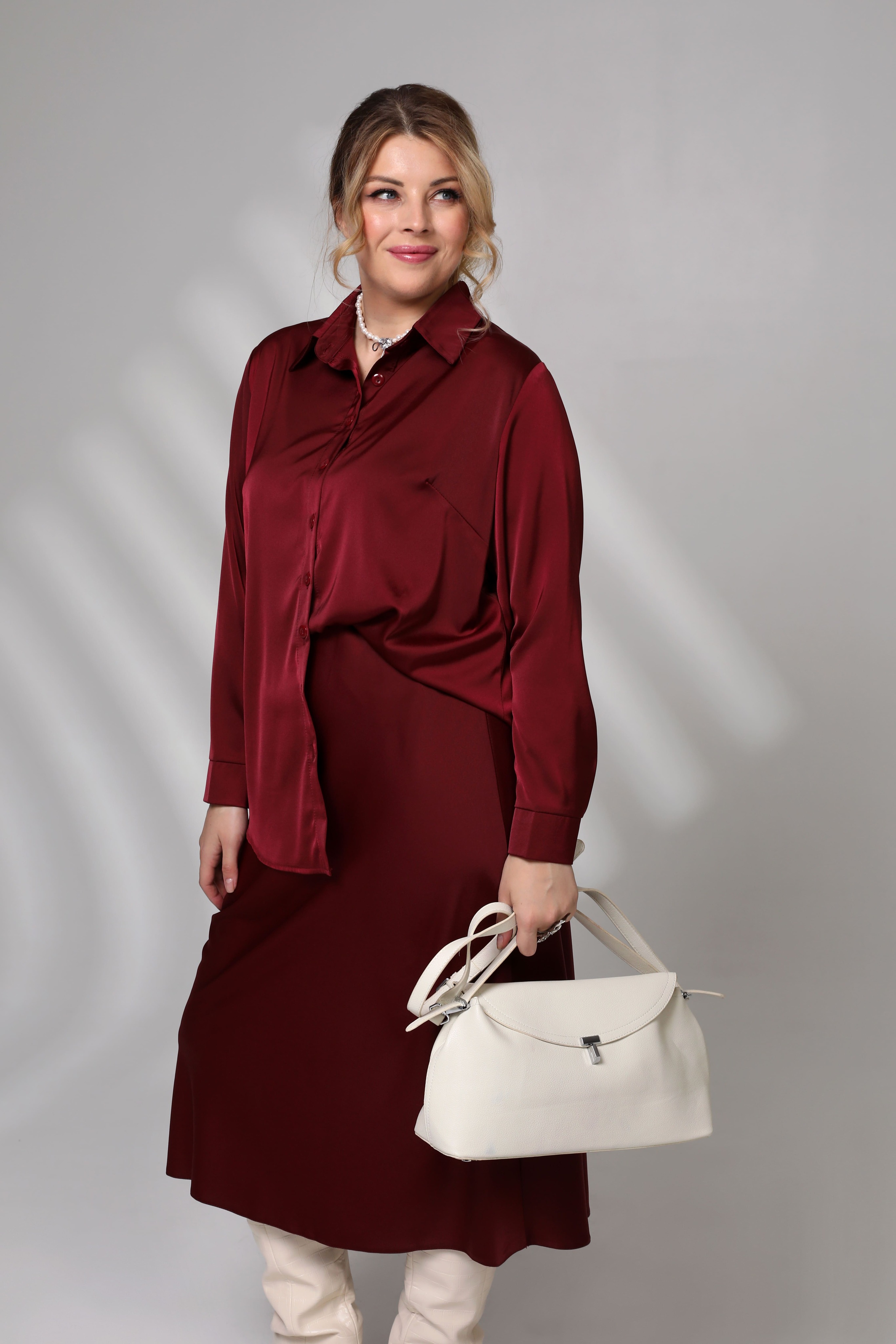 Костюм с юбкой атласный бордовый