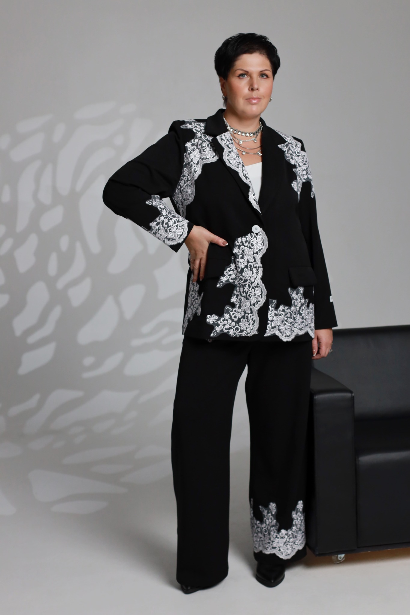 Костюм черный с кружевом