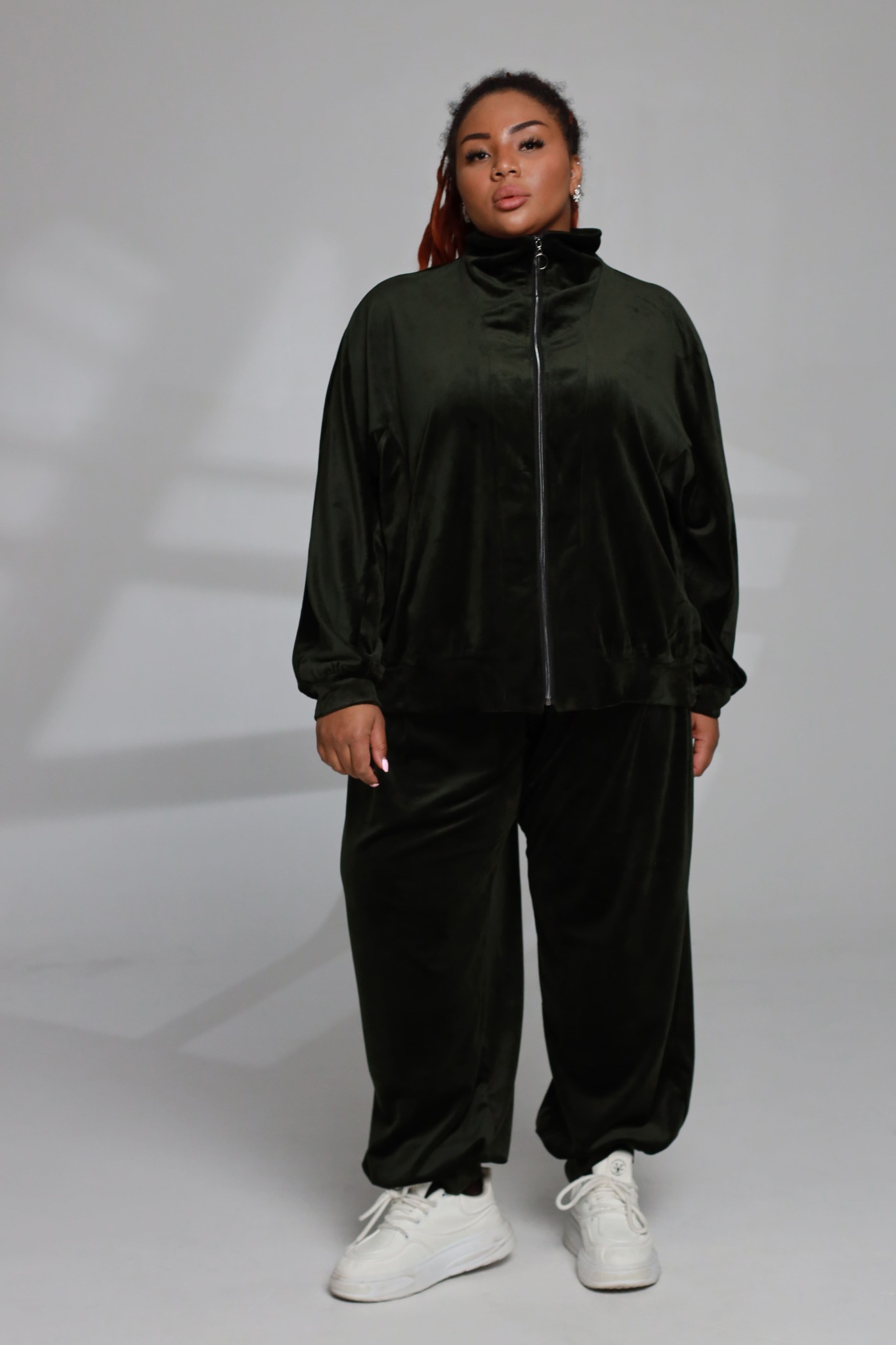 Велюровый спортивный костюм станет стильным и удобным выбором для повседневной носки и неформальных встреч. мягкая фактура ткани создаёт ощущение уюта, а свободный крой обеспечивает комфорт и свободу движений.