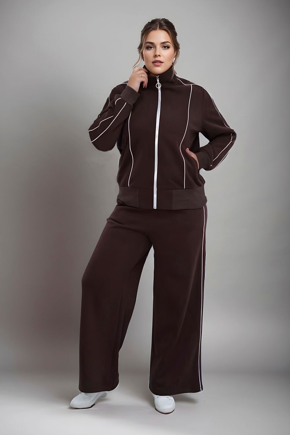 Костюм спортивный с белыми линиями коричневый