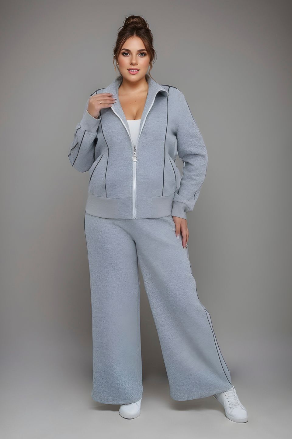 Костюм спортивный с белыми линиями серый