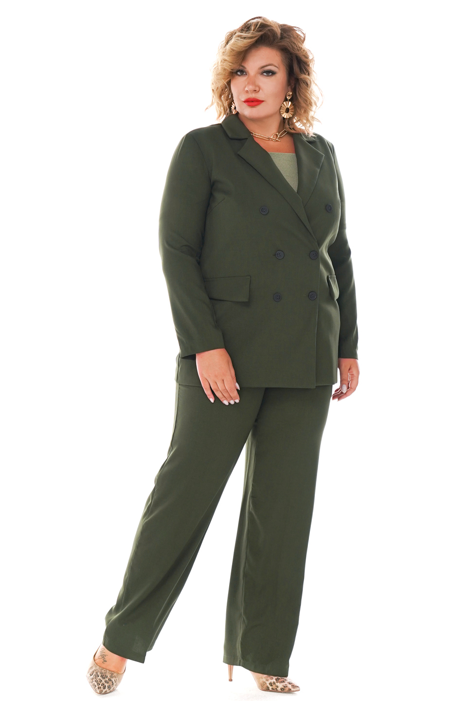 Жакет прямого кроя с v-образным вырезом, который оформлен классическим отложным воротником с лацканами. передние полочки дополнены атласной подкладкой, по спинке подкладка отсутствует. рукава полной длины украшены декоративными пуговками. аккуратные подплечники зрительно вытягивают силуэт и делают бедра визуально у же. вытачки на груди и по спинке способствуют оптимальной посадке по фигуре. модель на двубортной застёжке, что добавляет модели практичности и оригинальности. по бокам декоративные клапаны. при желании талию можно подчеркнуть съемным поясом в тон, который идёт в комплекте.