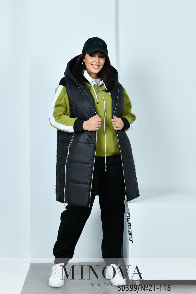 Этот костюм – идеальный выбор для комфортного и стильного наряда в любое время года. кофта с капюшоном и люверсами обеспечивает удобство и мягкость благодаря высококачественному материалу. двойная молния по центру кофты позволяет регулировать тепло в зависимости от потребностей. рукава длинные с манжетом и вставками в тон брюк создают хороший эффект дизайна. на основе по бокам и на капюшоне расположена вставка белого цвета, которая добавляет контрастность и оригинальность к наряду. кофта также имеет карманы для хранения мелочей. брюки спортивного стиля с резинкой на талии и манжетами внизу создают комфортный образ, позволяя двигаться с легкостью. боковые карманы позволяют хранить необходимые вещи на ходу, что делает костюм еще более функциональным и удобным для повседневного использования.