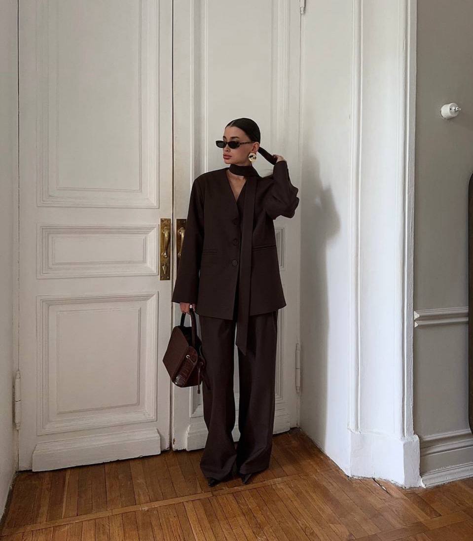 изысканный костюм в стиле oversize — тренд сезона! лаконичный крой, акцентный пояс и идеальная посадка подчеркивают фигуру и создают образ в стиле “city chic”.