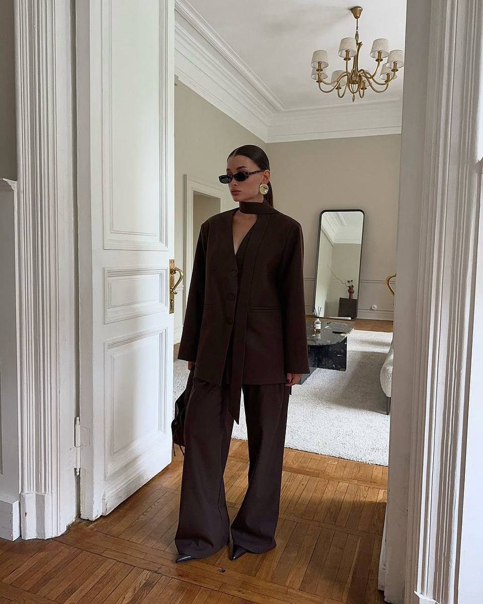 изысканный костюм в стиле oversize — тренд сезона! лаконичный крой, акцентный пояс и идеальная посадка подчеркивают фигуру и создают образ в стиле “city chic”.
