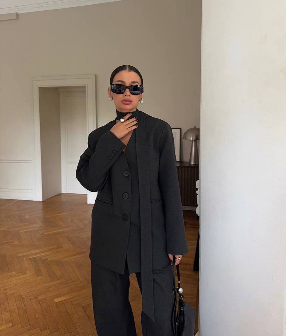 изысканный костюм в стиле oversize — тренд сезона! лаконичный крой, акцентный пояс и идеальная посадка подчеркивают фигуру и создают образ в стиле “city chic”.