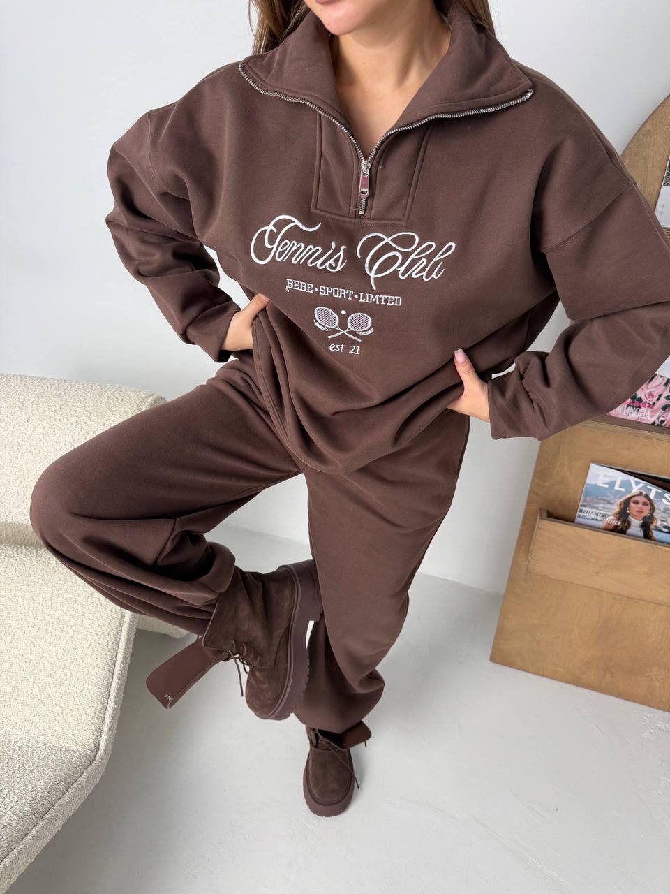 уютный костюм оверсайз с воротником на молнии и стильной вышивкой — идеально на каждый день.