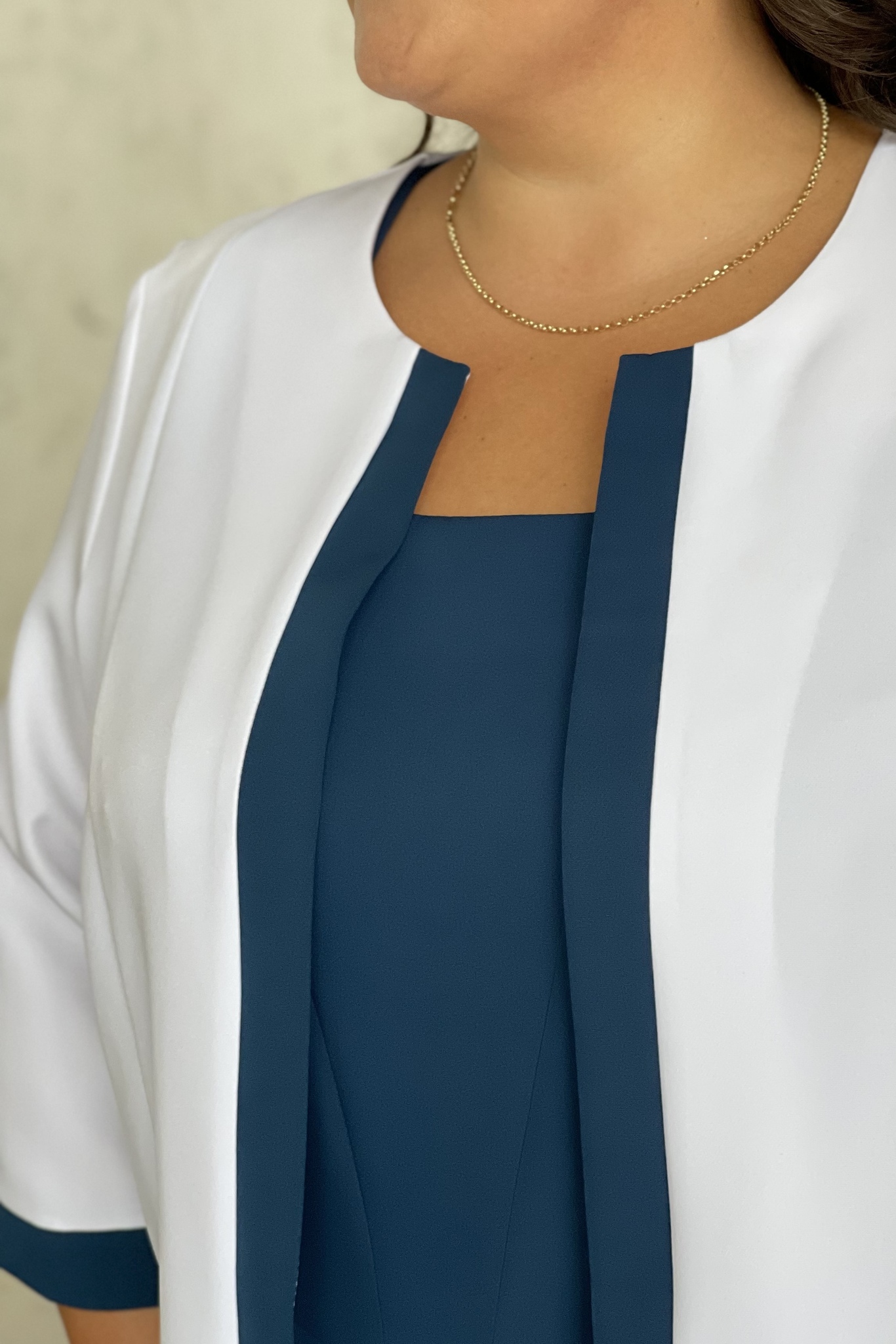 Женственный жакет имеет круглый вырез и рукава длиной 7/8. формирующие швы обеспечивают оптимальную посадку по фигуре. контрастный кант освежает образ и добавляет динамичности. гламурный, легкий, выгодно подчеркивающий фигуру костюм сделает вас заметной и выделит из толпы.