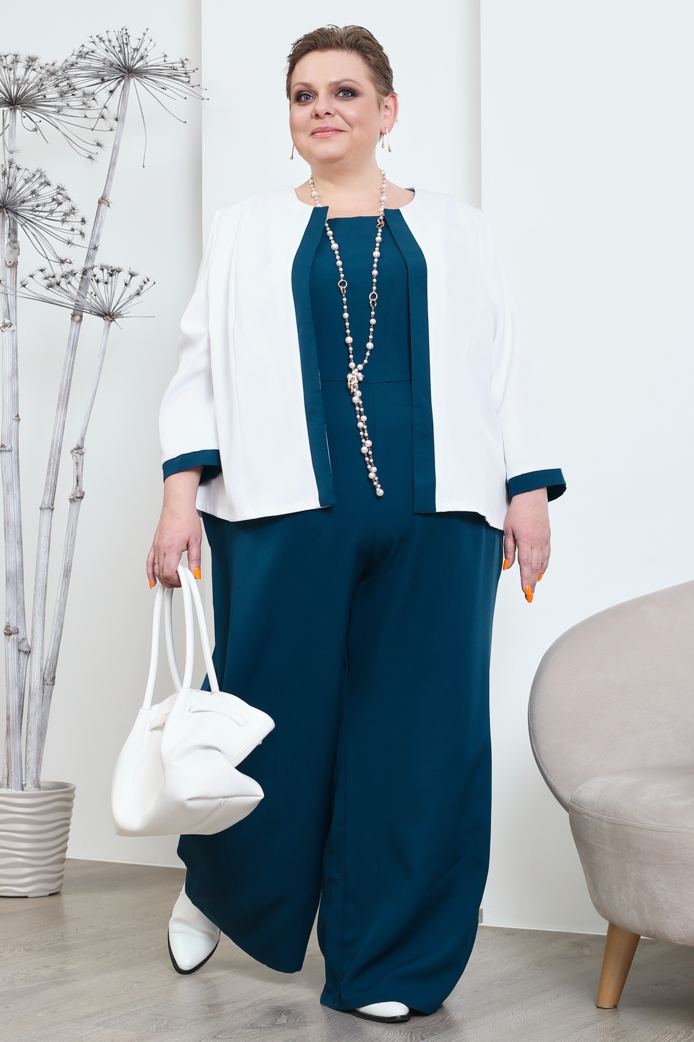 Костюм-комбинезон с жакетом темно-бирюзовый
