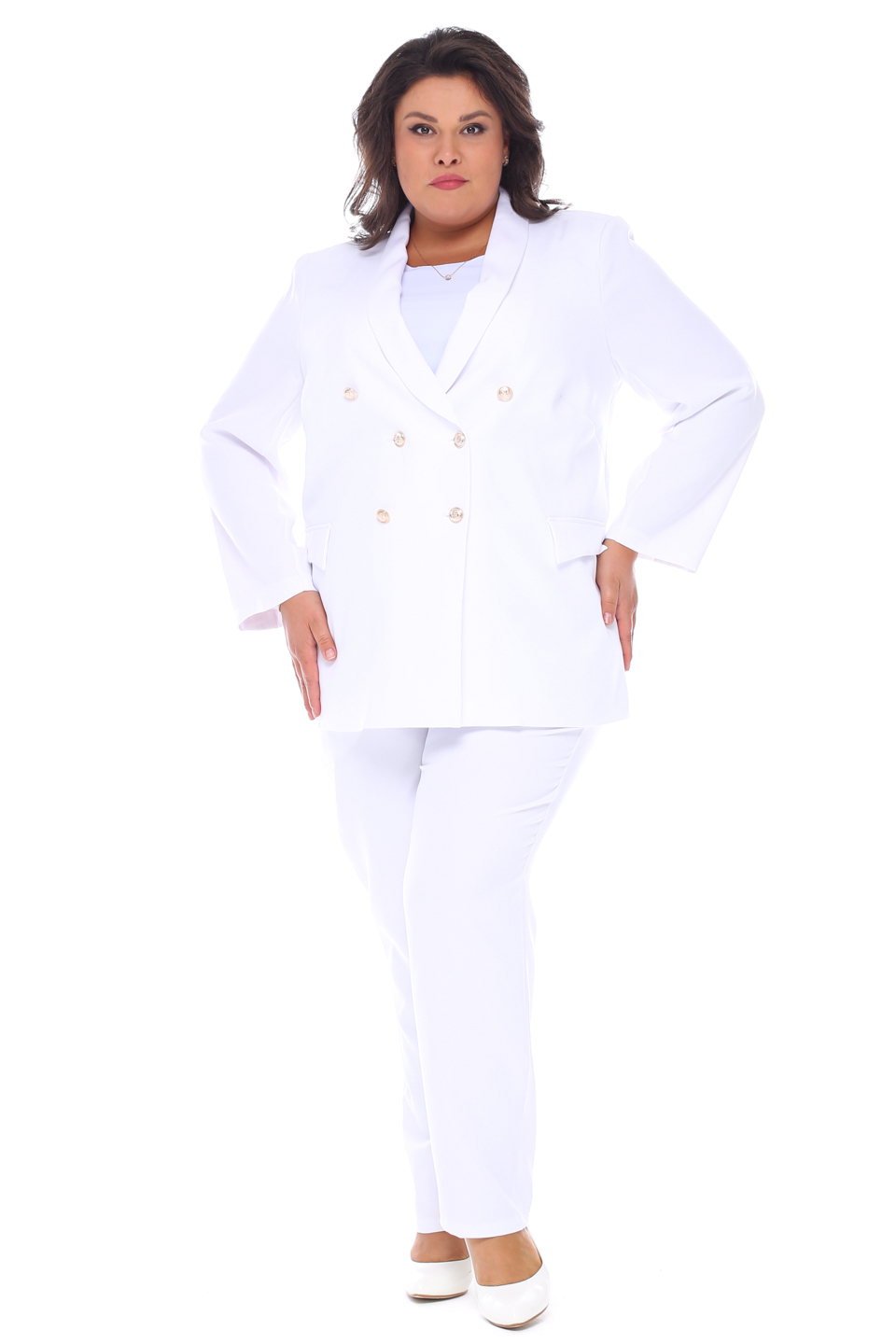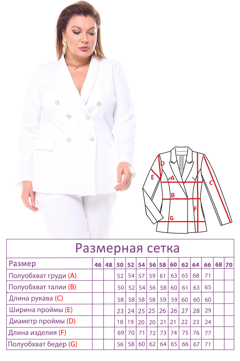 Жакет прямого кроя с v-образным вырезом, который оформлен отложным воротником. передние полочки дополнены атласной подкладкой, по спинке подкладка отсутствует. рукава полной длины украшены декоративными пуговками. аккуратные подплечники зрительно вытягивают силуэт и делают бедра визуально у же. вытачки на груди и по спинке способствуют оптимальной посадке по фигуре. модель на двубортной застёжке, что добавляет модели практичности и оригинальности. по бокам декоративные клапаны.