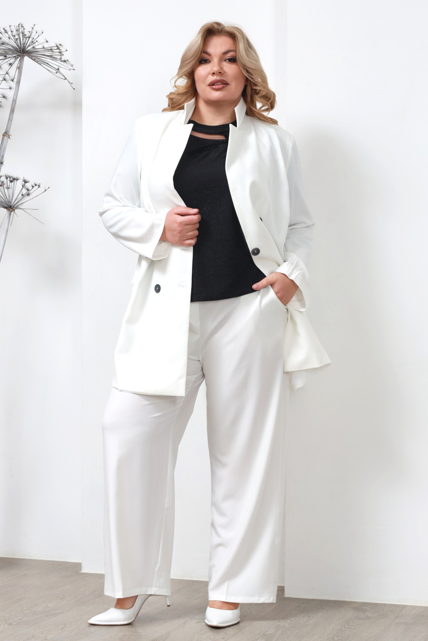Костюм двубортный с классическим воротом белый