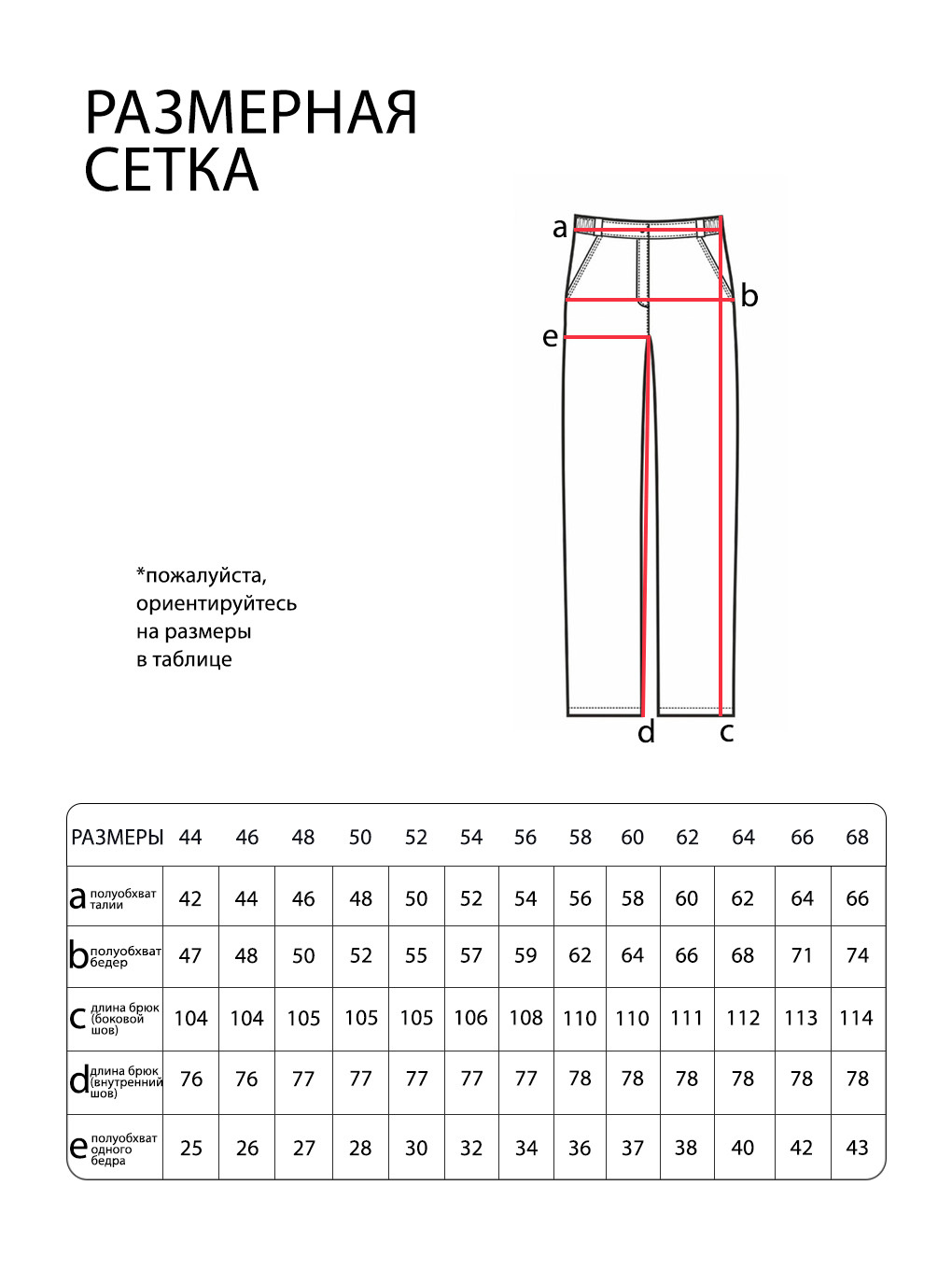 Просим обратить внимание, что в таблице приведены замеры фигуры, а не изделия.