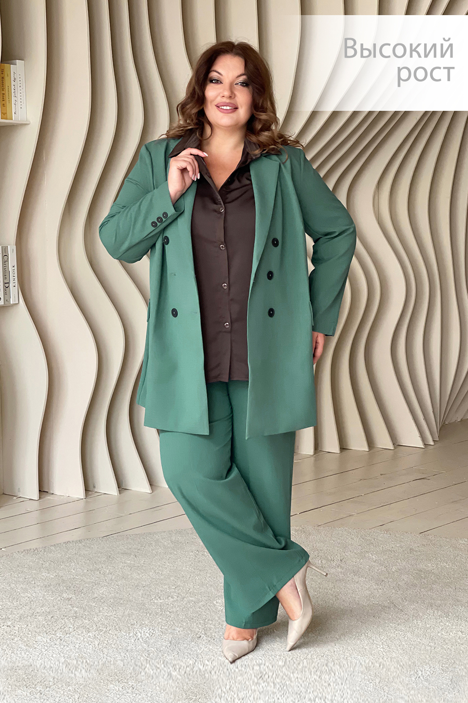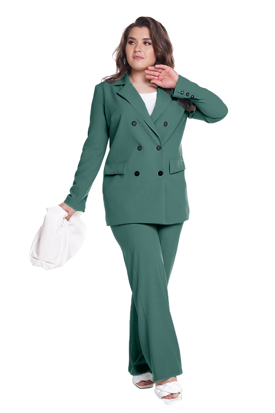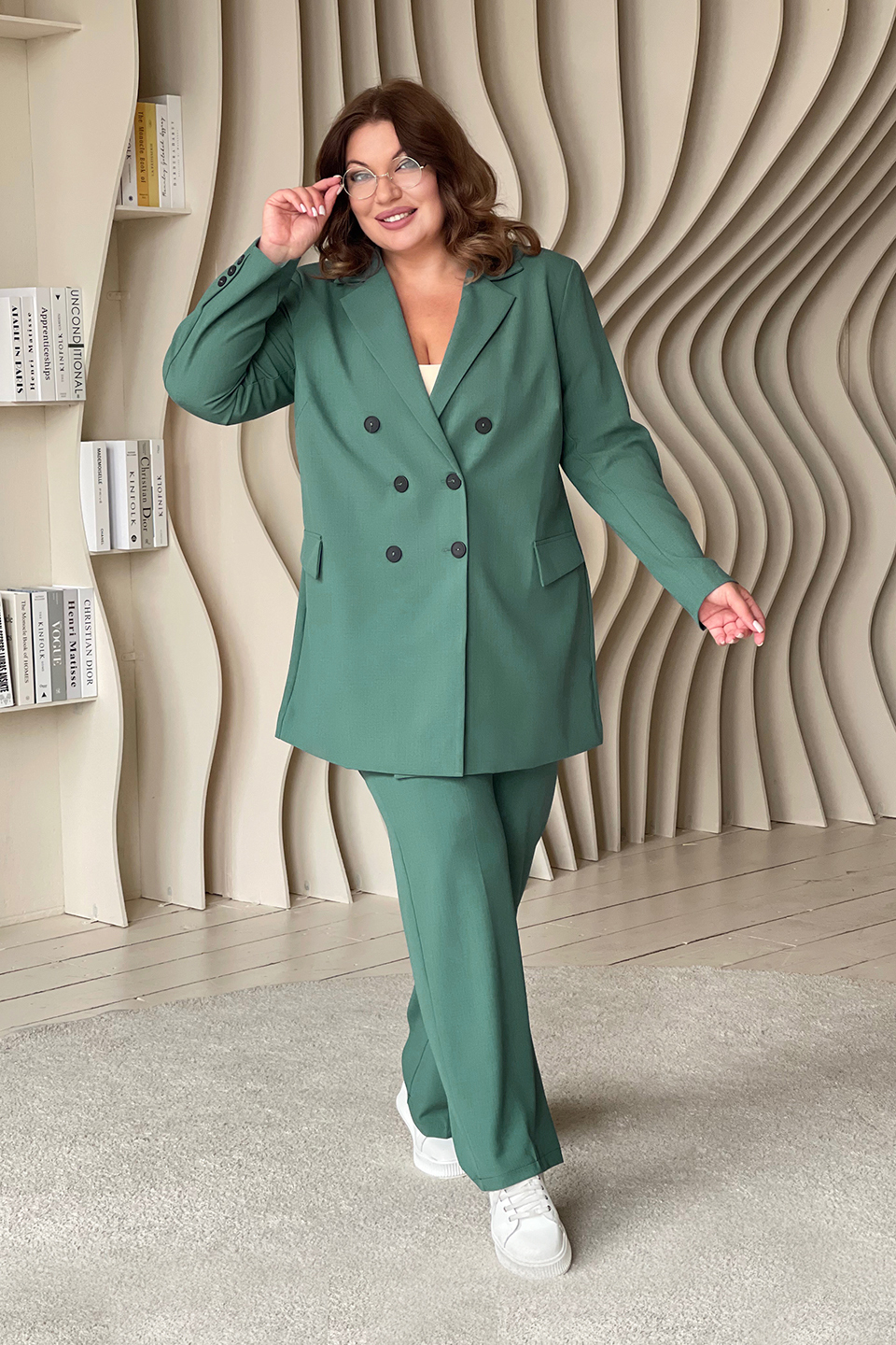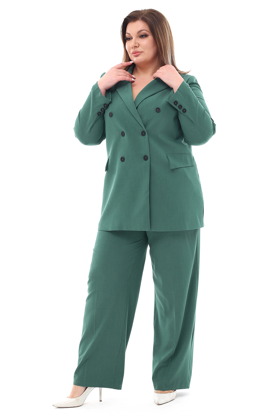 Костюм двубортный с классическим воротом зеленый