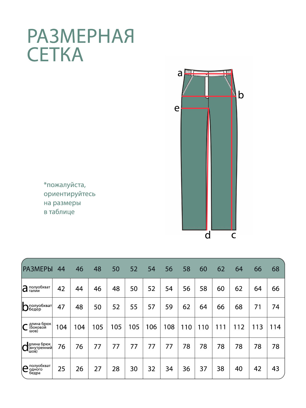 Просим обратить внимание, что в таблице приведены замеры фигуры, а не изделия.