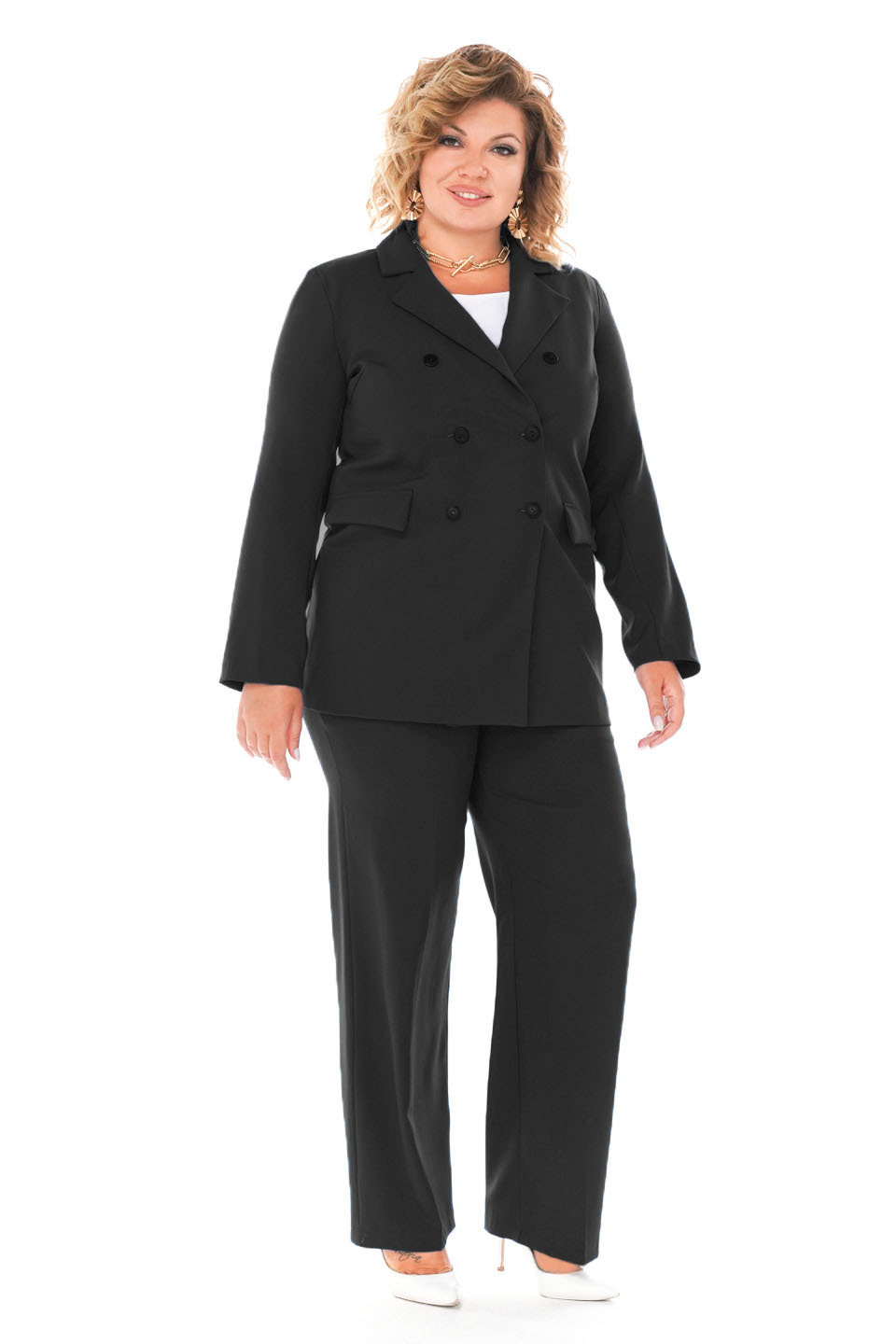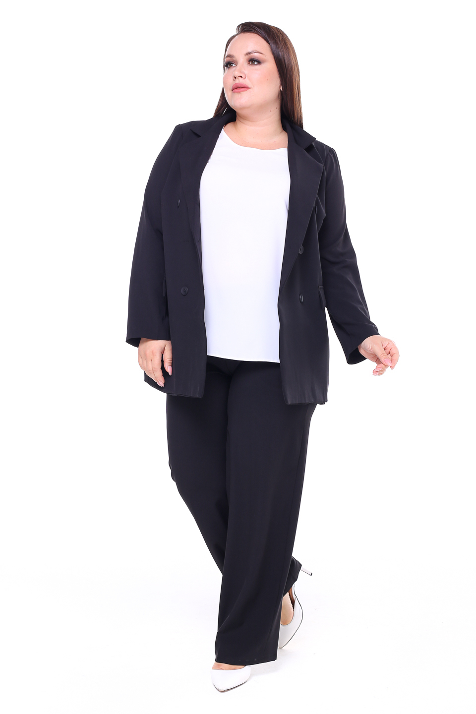 Костюм двубортный с классическим воротом черный