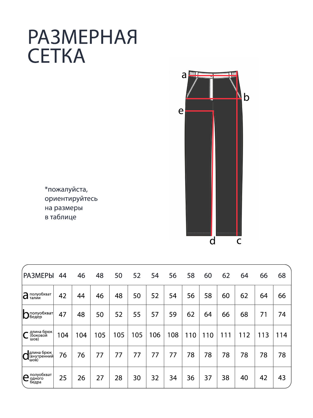 Просим обратить внимание, что в таблице приведены замеры фигуры, а не изделия.