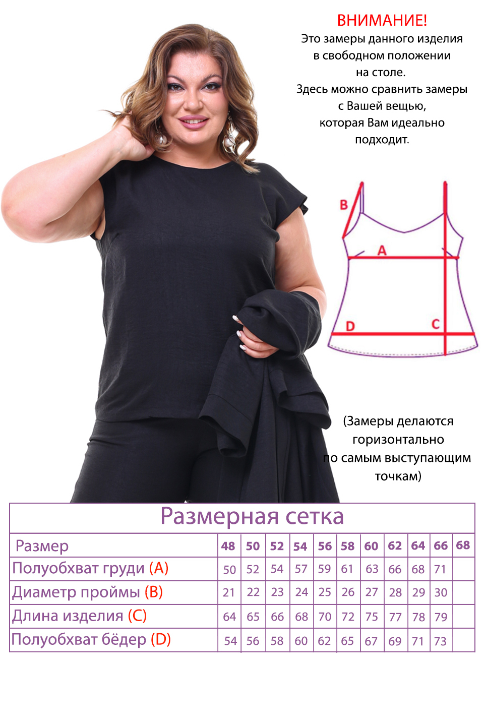 Блузка прямого кроя без рукавов. круглый вырез оформлен узкой бейкой. вытачки на груди способствуют оптимальной посадке по фигуре.