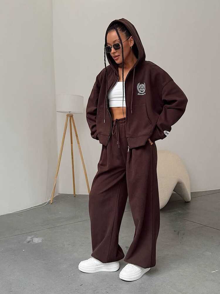 Женский й костюм трендовый оверсайз-крой. • элегантная вышивка логотипа размера единый 42-48.