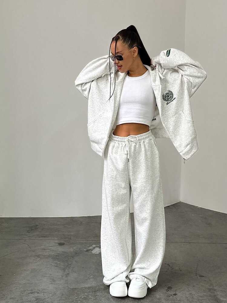 Женский й костюм трендовый оверсайз-крой. • элегантная вышивка логотипа размера единый 42-48.