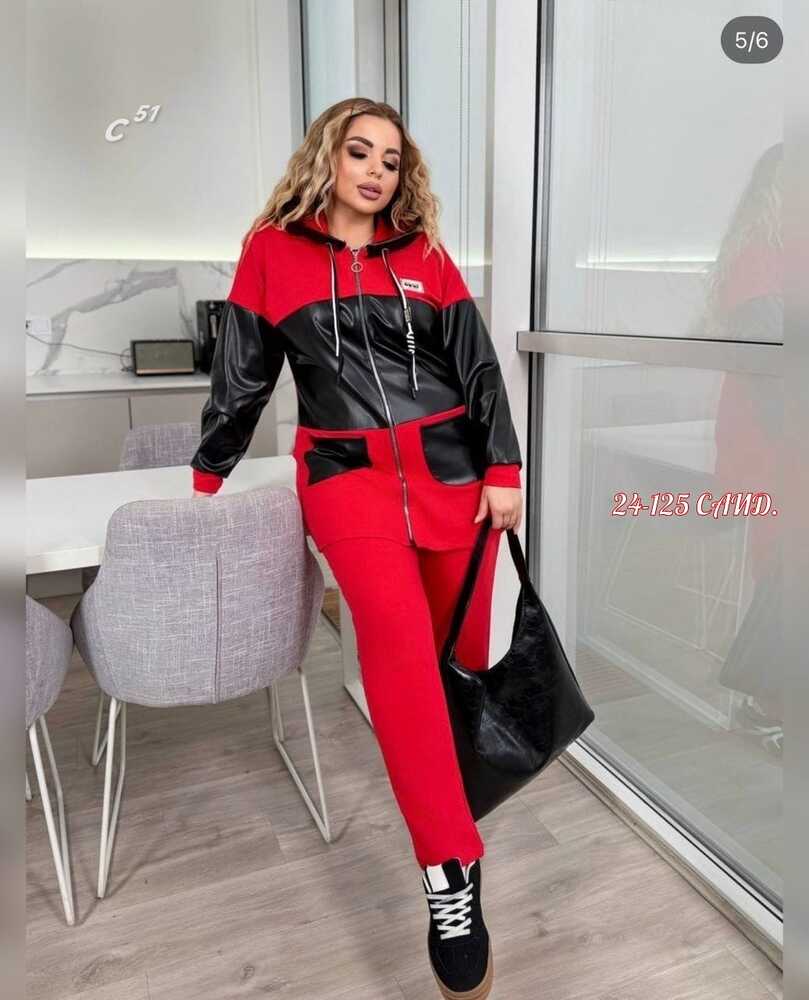 Женский костюм ткань: кожа + трикотаж