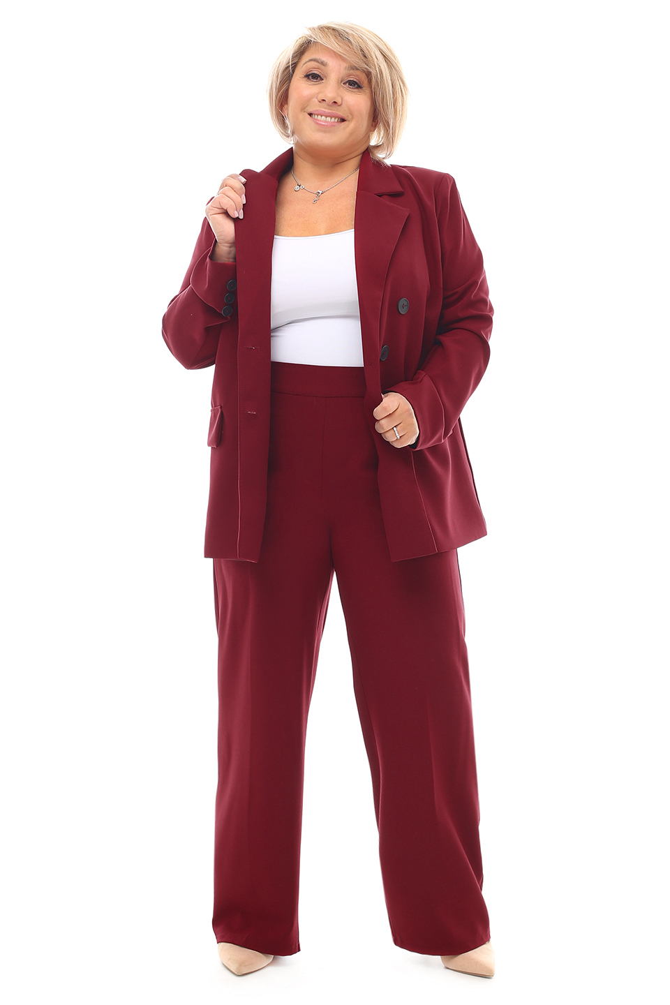 Костюм двубортный с классическим воротом винный (средний рост)