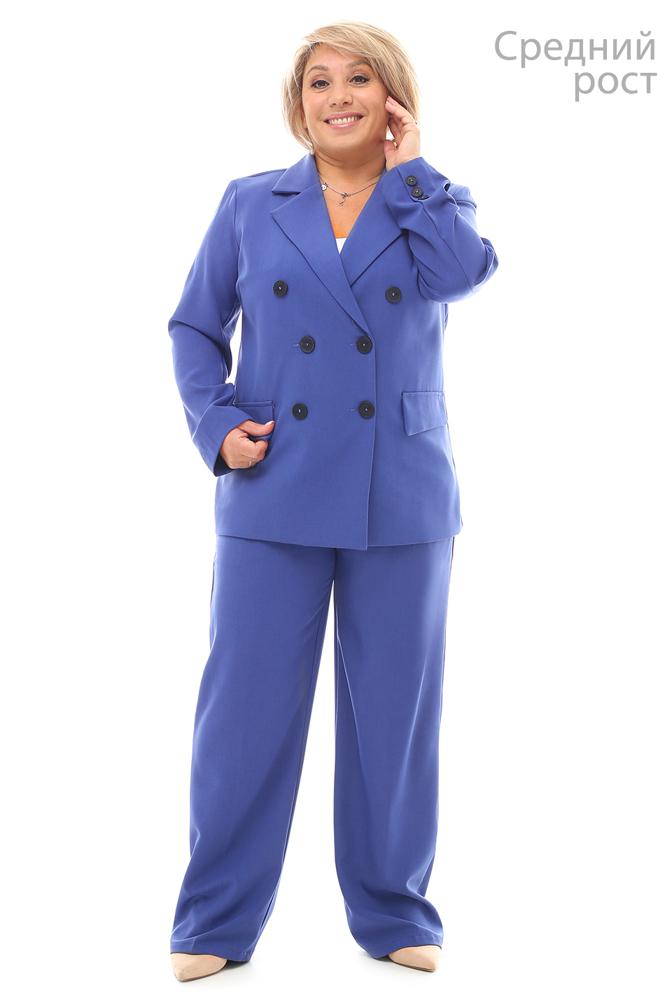 Костюм двубортный с классическим воротом индиго (средний рост)