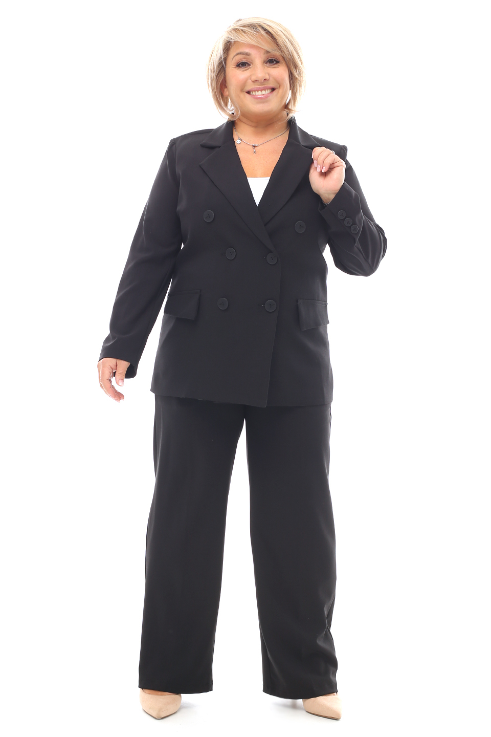 Брюки классического кроя отлично сидят за счет комфортной резинки на поясе по спинке. по бокам практичные карманы. модель привлекает внимание широким клешем книзу. костюм превосходно сочетается как с каблуками для создания нарядного образа, так и с кедами для более повседневного стиля. элементы костюма можно также носить по отдельности. (топ в комплект не входит).