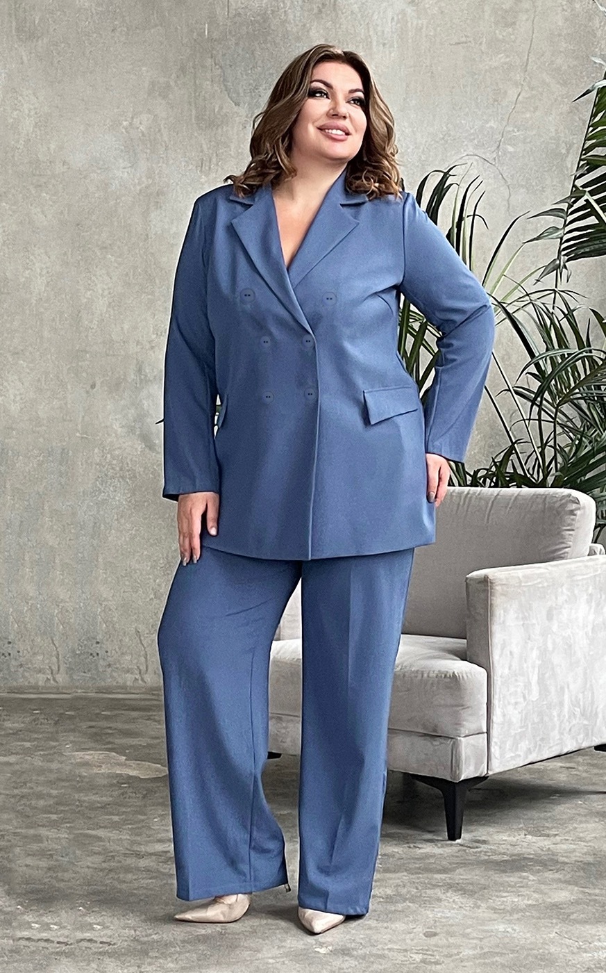 Костюм двубортный высокий рост с пуговками в тон индиго
