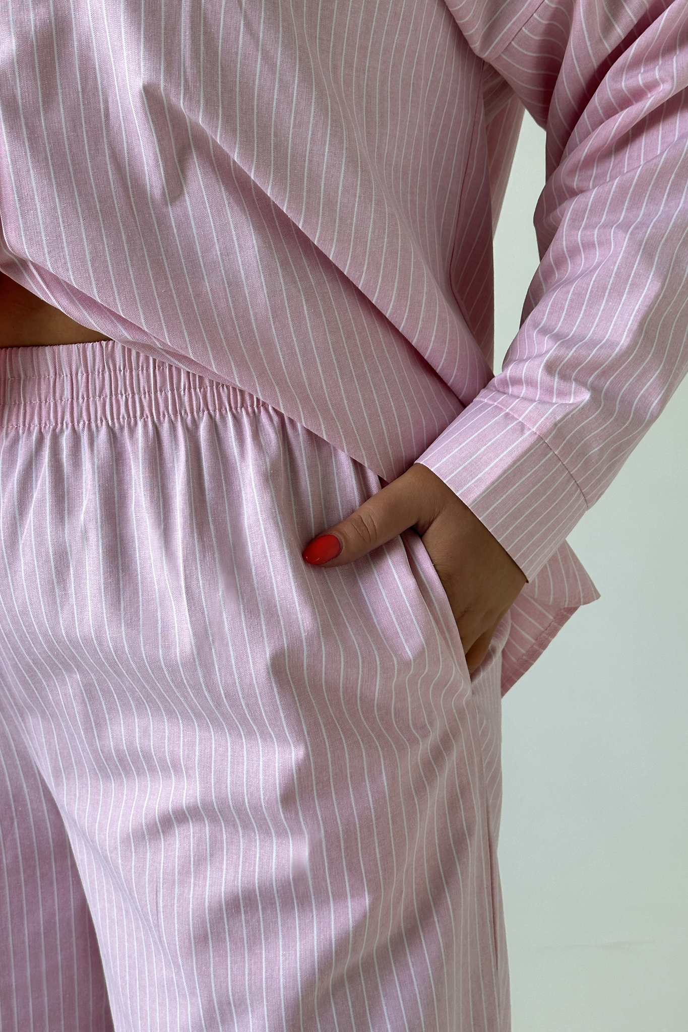 Стильный и комфортный костюм состоит из удлиненной рубашки и брюк выполненных из мягкого материала. рубашка имеет классический отложной воротник и рукава полной длины с приспущенной проймой. кокетка по спинке обеспечивает оптимальную посадку по фигуре. модель застегивается на оригинальные пуговки по всей длине под планку.