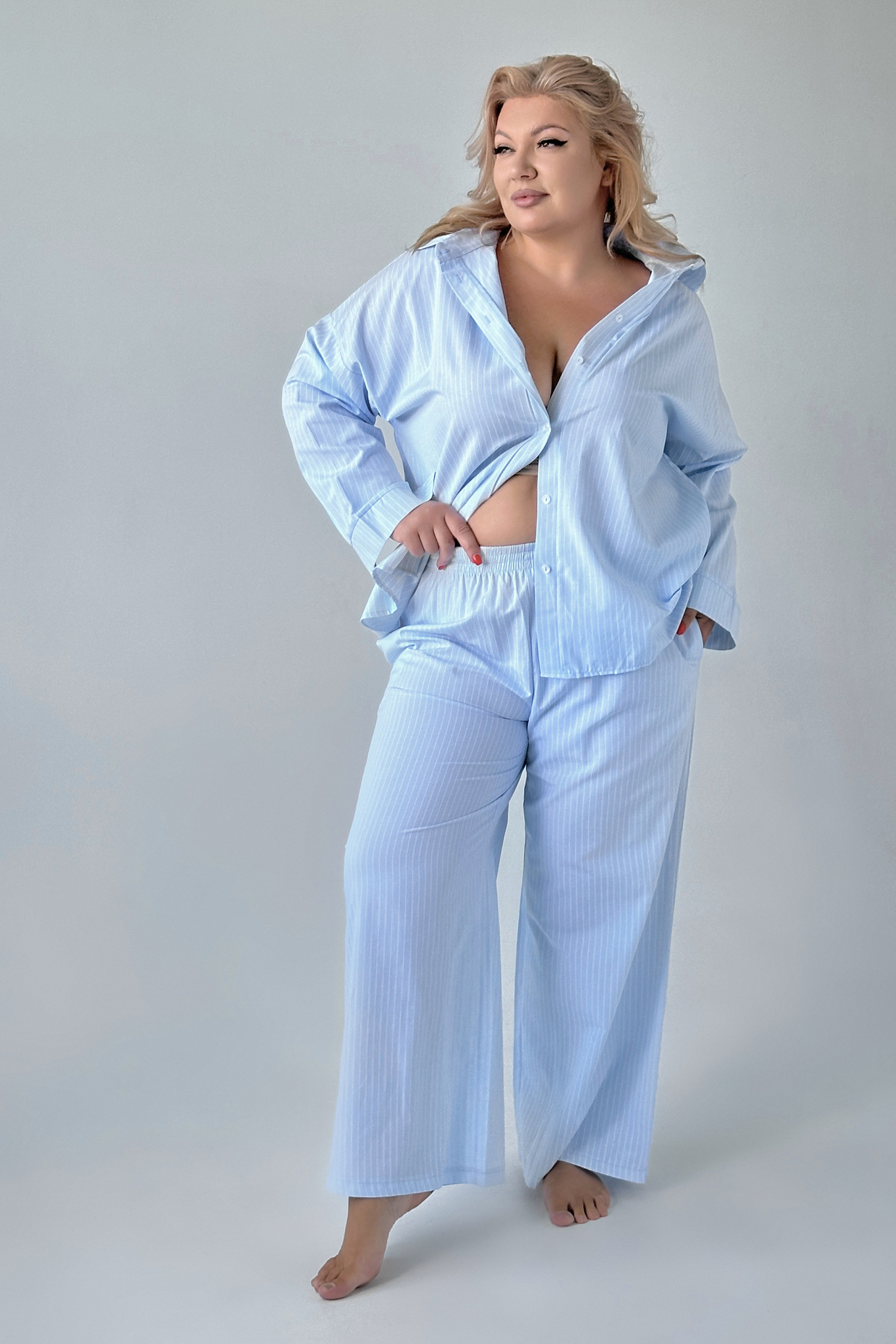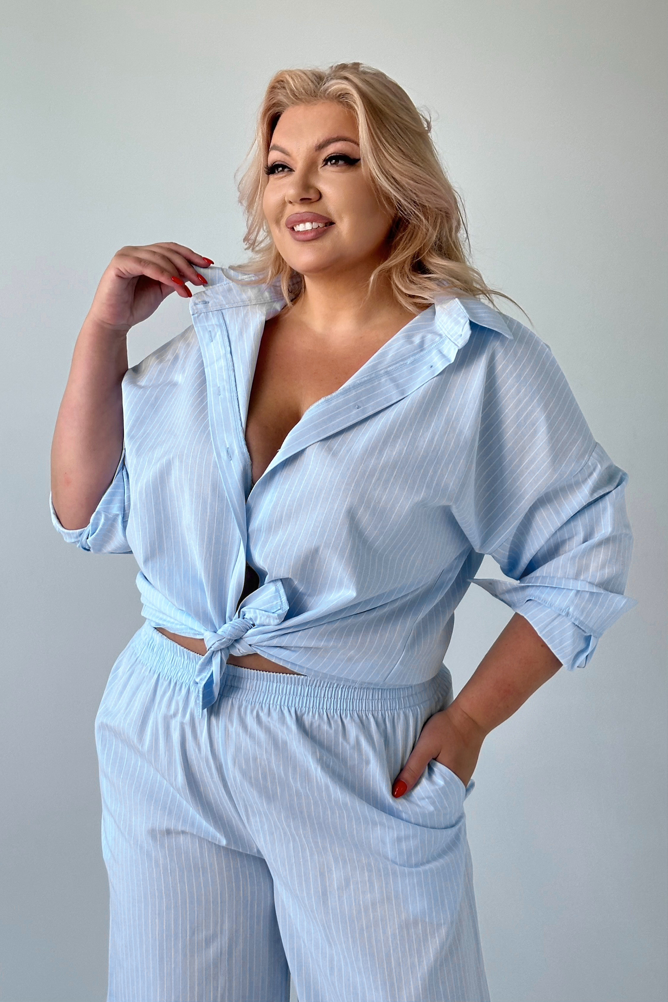 Костюм брючный "полоска" с рубашкой голубой