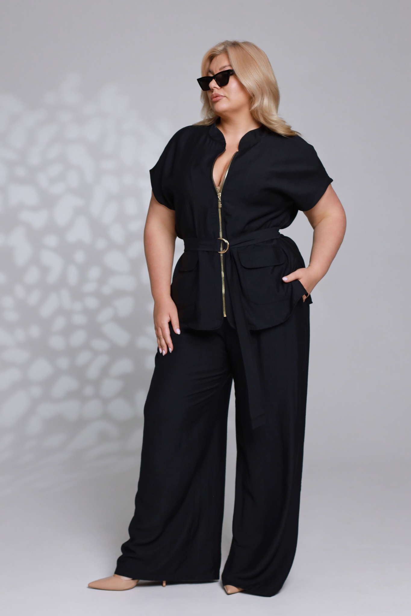 Костюм из мягкого струящегося материала состоит из удлиненной рубашки и брюк. брюки отлично сидят за счет широкой эластичной резинки на поясе. по бокам практичные карманы. рубашка прямого кроя с короткими приспущенными рукавами. круглый вырез дополнен стойкой-воротником. модель застёгивается на молнию. небольшие разрезы по бокам обеспечивают оптимальную посадку по фигуре. накладной карман на груди оформлен клапанами. с помощью однотонного пояса при желании можно обозначить талию. костюм превосходно сочетается как с каблуками для создания нарядного образа, так и с кедами для более повседневного стиля. модель также можно носить по отдельности.