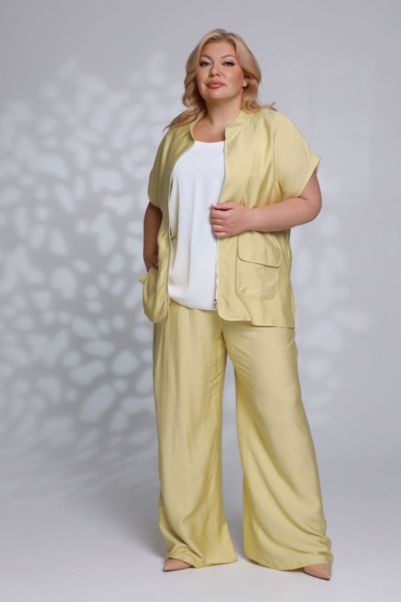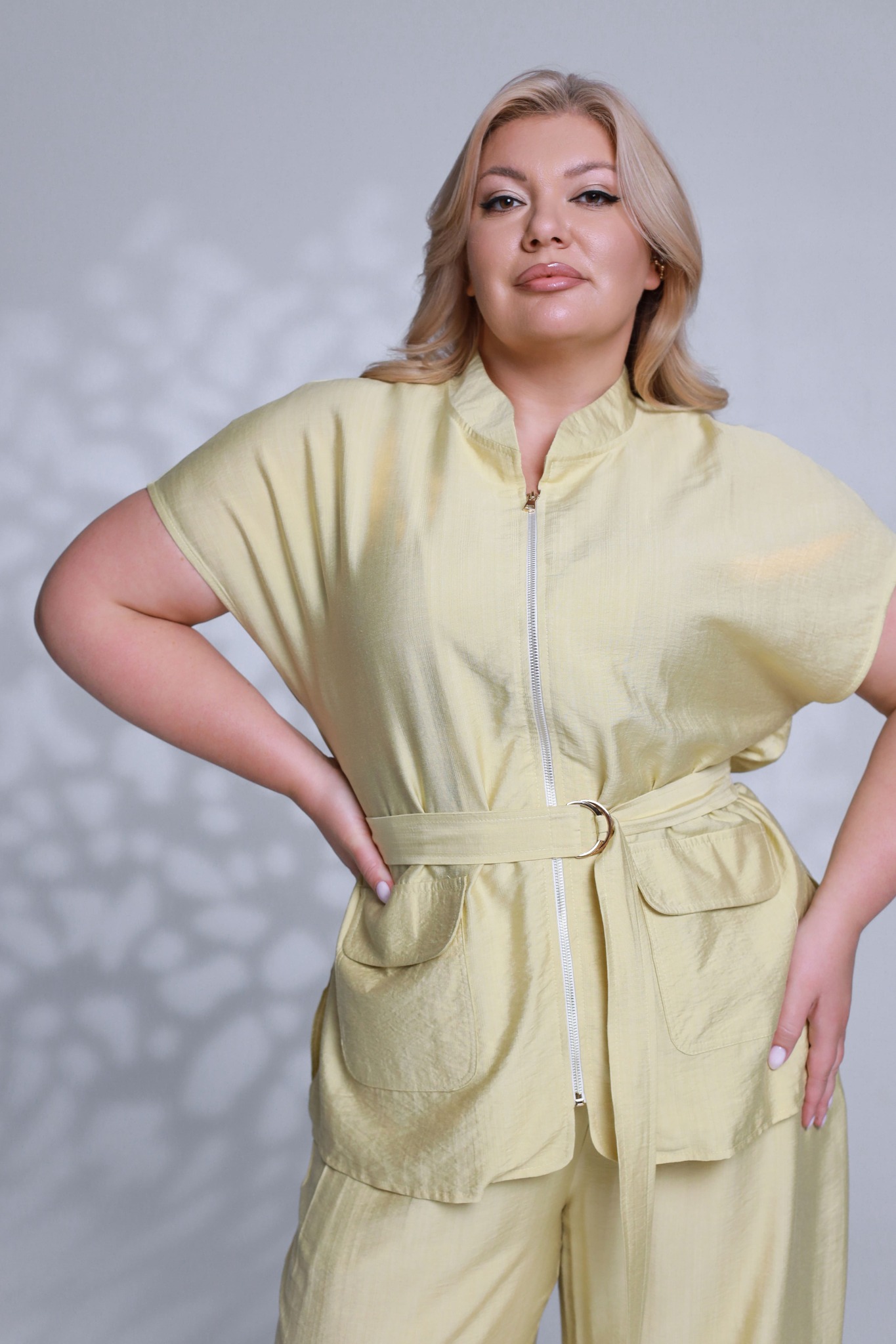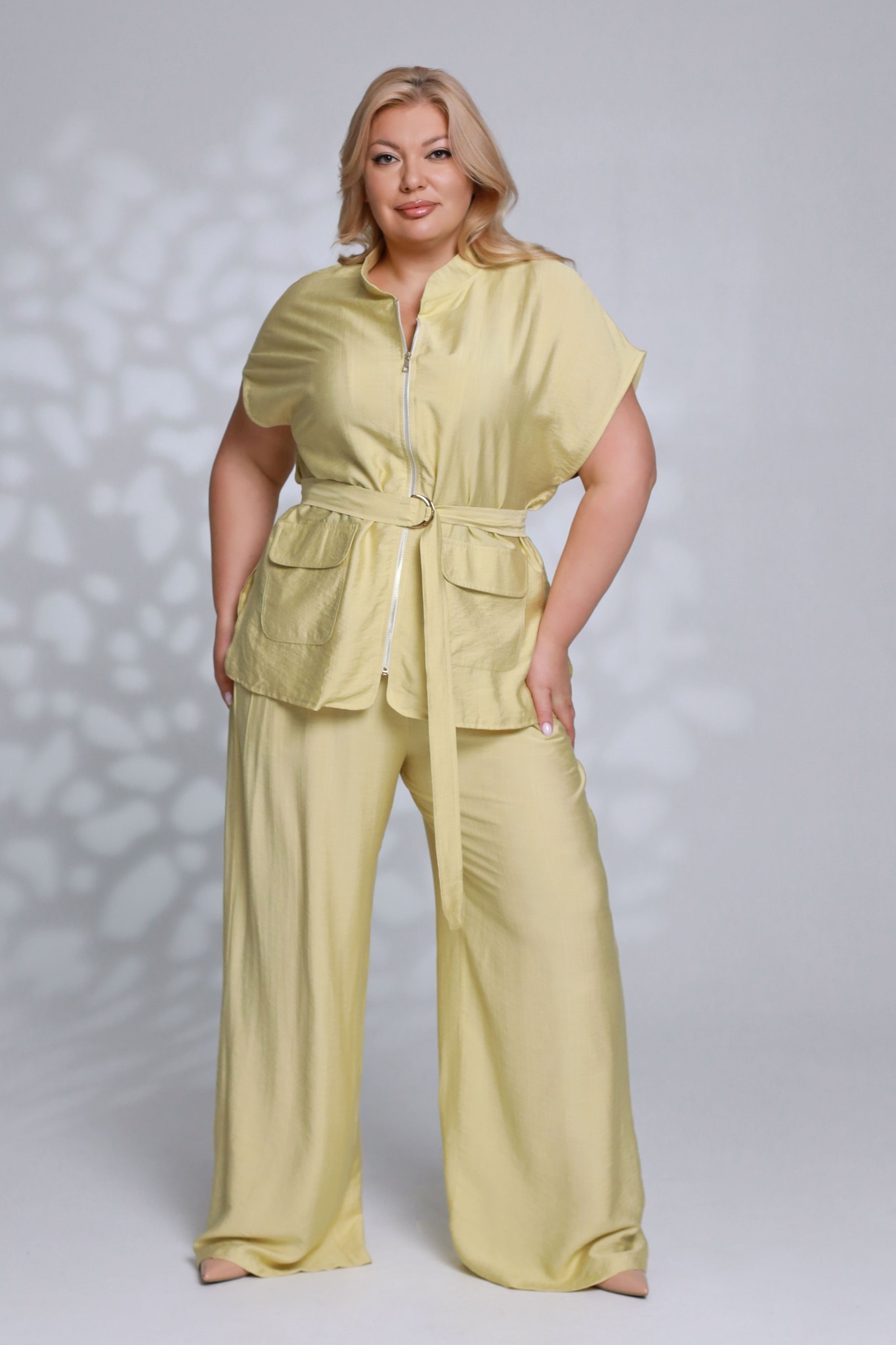 Костюм из мягкого струящегося материала состоит из удлиненной рубашки и брюк. брюки отлично сидят за счет широкой эластичной резинки на поясе. по бокам практичные карманы. рубашка прямого кроя с короткими приспущенными рукавами. круглый вырез дополнен стойкой-воротником. модель застёгивается на молнию. небольшие разрезы по бокам обеспечивают оптимальную посадку по фигуре. накладной карман на груди оформлен клапанами. с помощью однотонного пояса при желании можно обозначить талию. костюм превосходно сочетается как с каблуками для создания нарядного образа, так и с кедами для более повседневного стиля. модель также можно носить по отдельности.