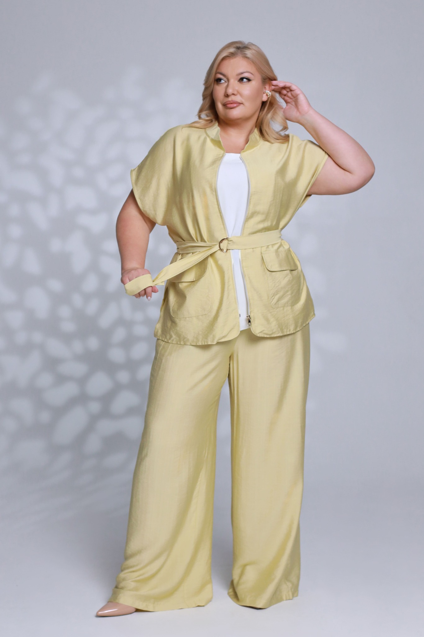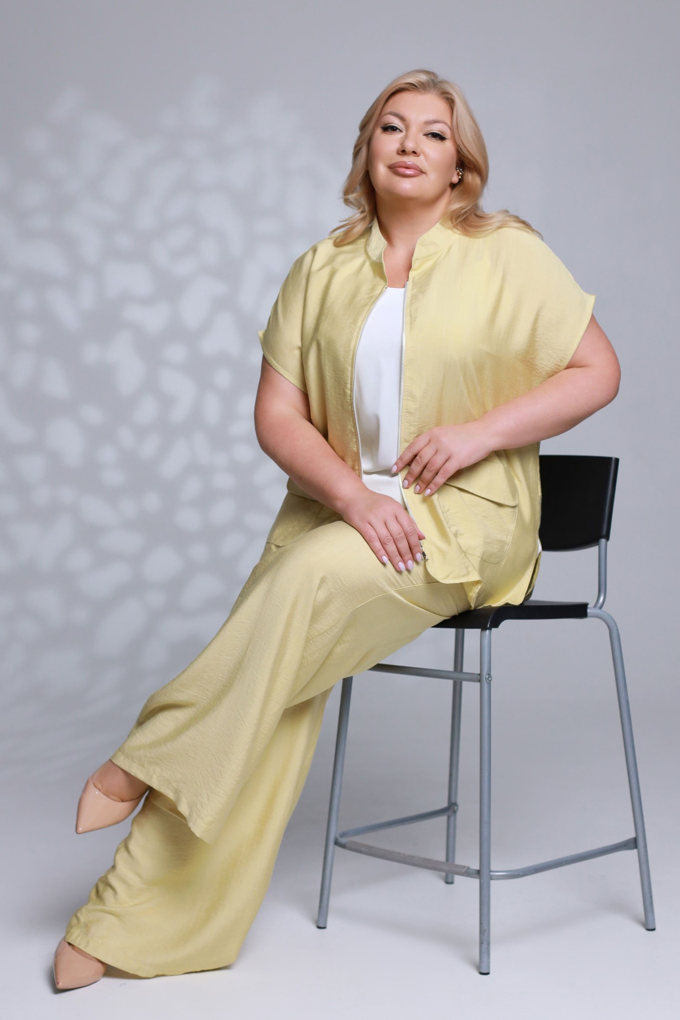 Костюм брючный с верхом на молнии с хлястиками горчичный