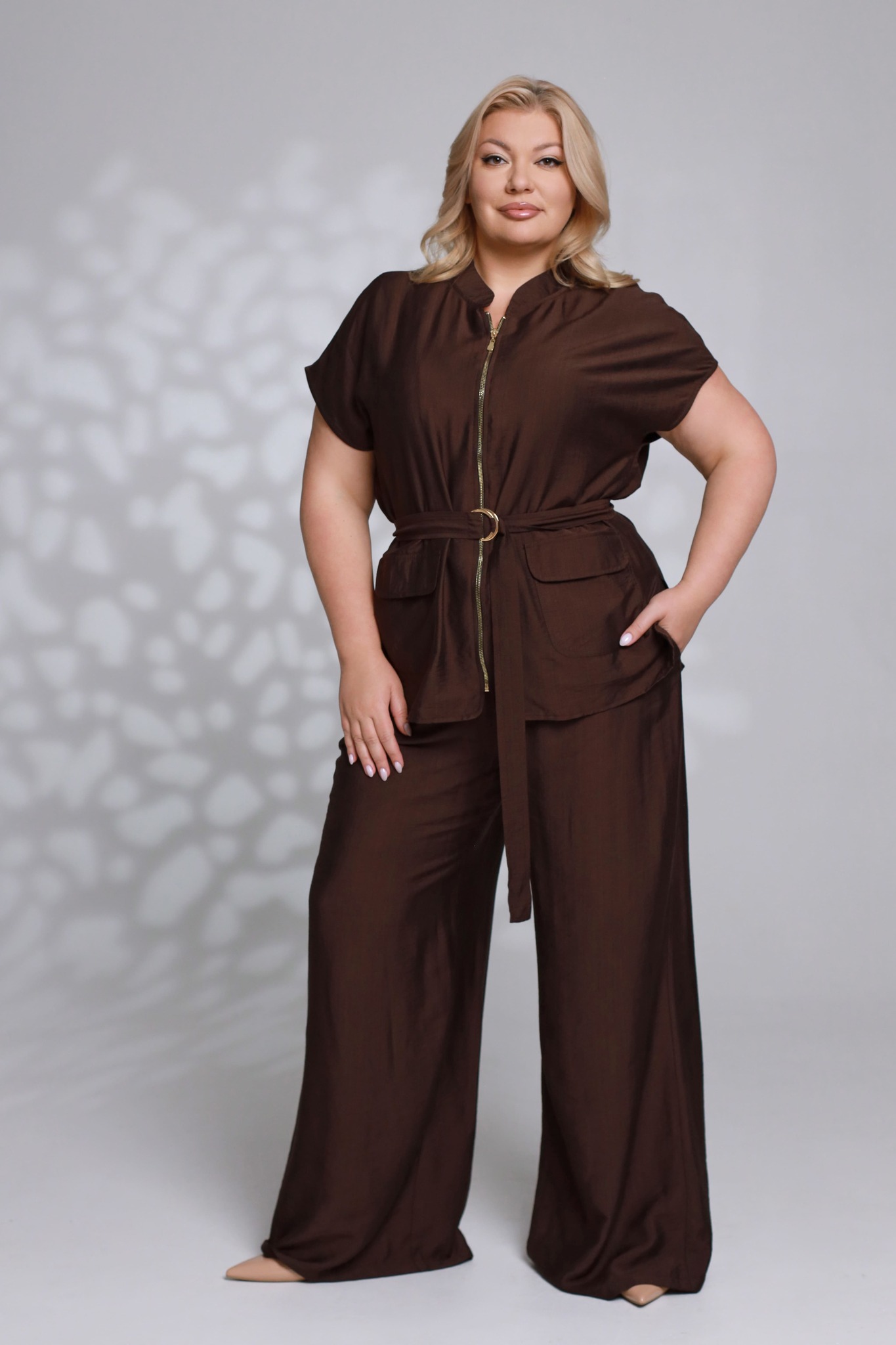 Костюм брючный с верхом на молнии с хлястиками шоколад