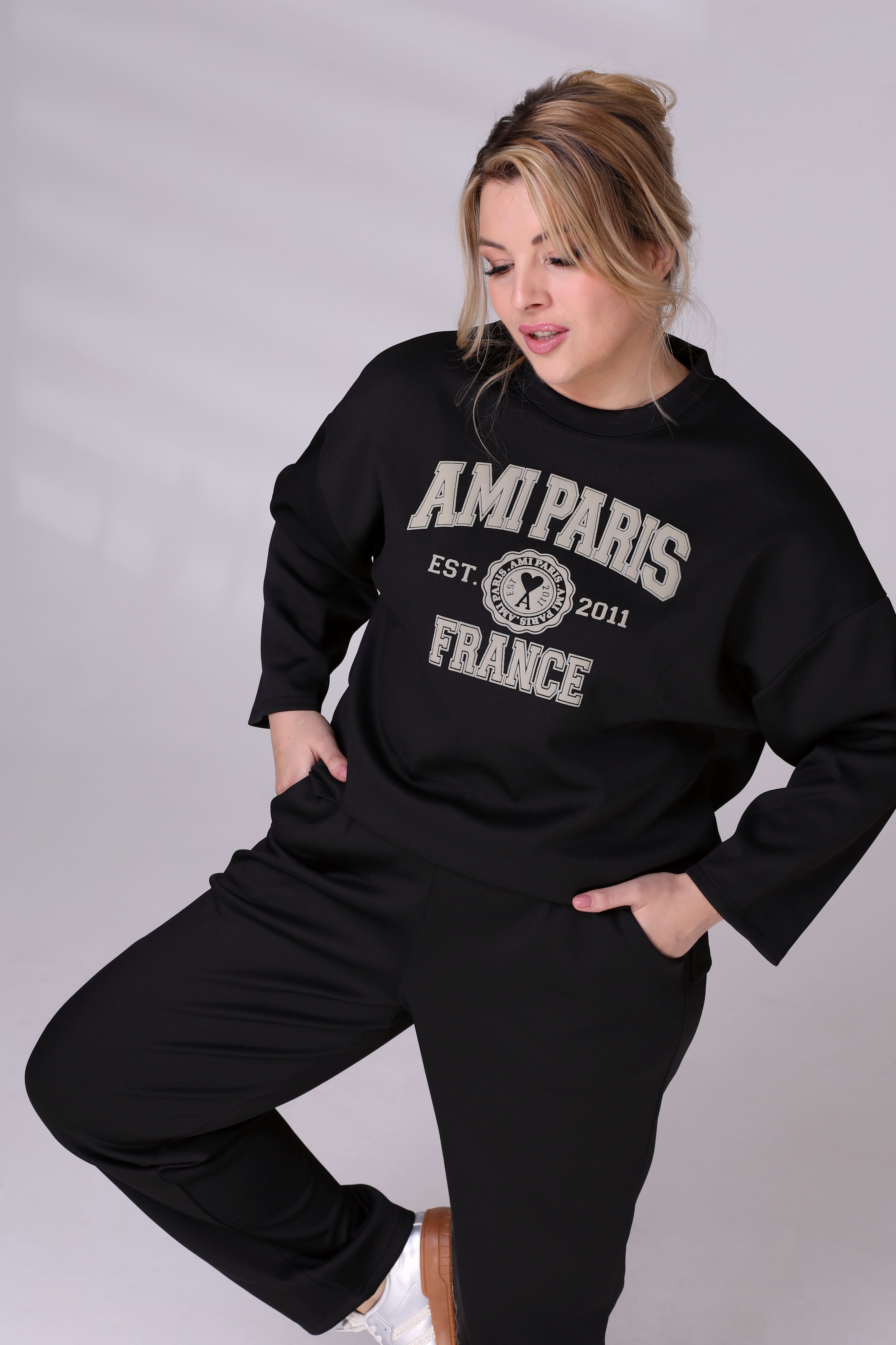 Спортивный костюм из высококачественного трикотажа состоит из лонгслива и брюк. удобный лонгслив имеет круглый вырез с узким кантом. приспущенные рукава полной длины.небольшие разрезы по бокам обеспечивают оптимальную посадку по фигуре. контрастные надписи на груди добавляют динамичности и освежают образ. брюки отлично сидят за счет комфортной высокой посадки и эластичной резинки на поясе. по бокам глубокие карманы. удобный костюм подходит для долгих прогулок, активного отдыха и путешествий. свободный крой не будет сковывать ваши движения, обеспечит комфорт и свободу. составляющие костюма можно носить по отдельности, сочетая с другими вещами из вашего гардероба.
