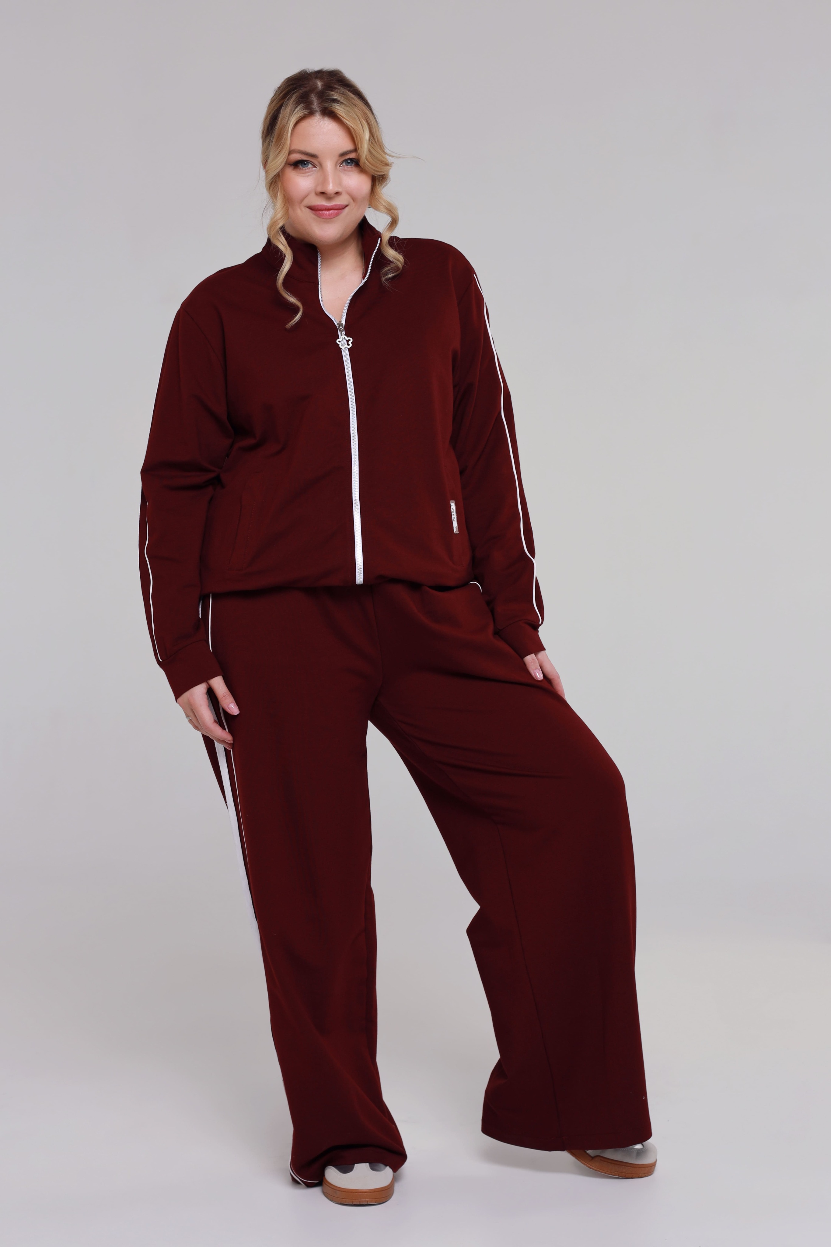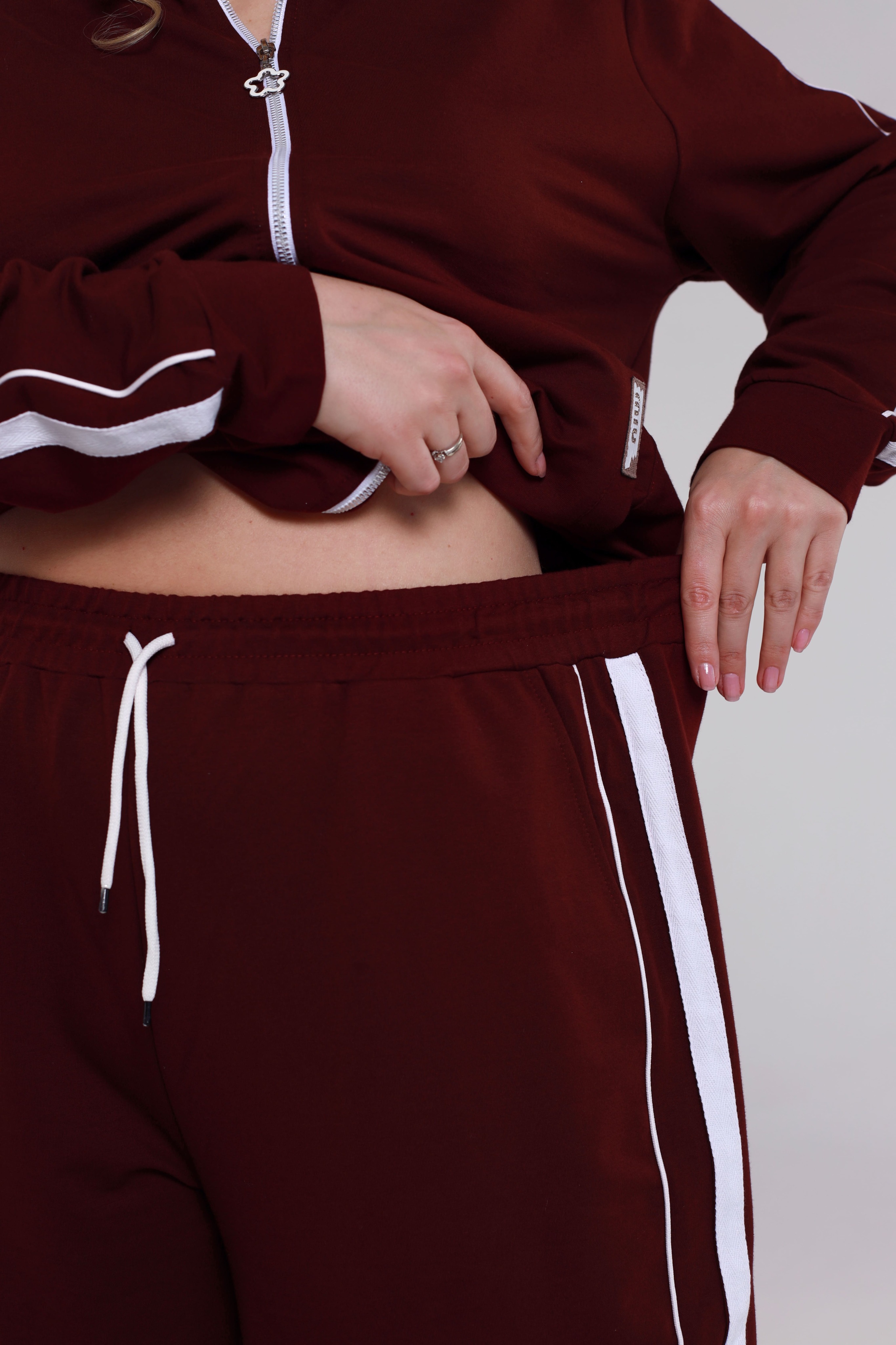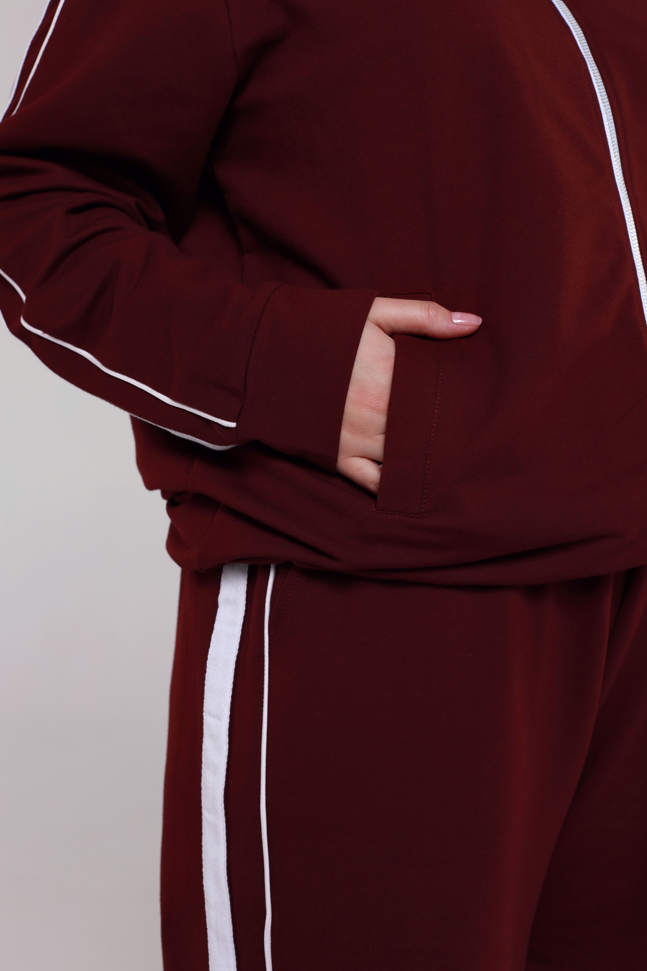 Костюм спортивный с белыми полосками по бокам и на рукавах бордовый