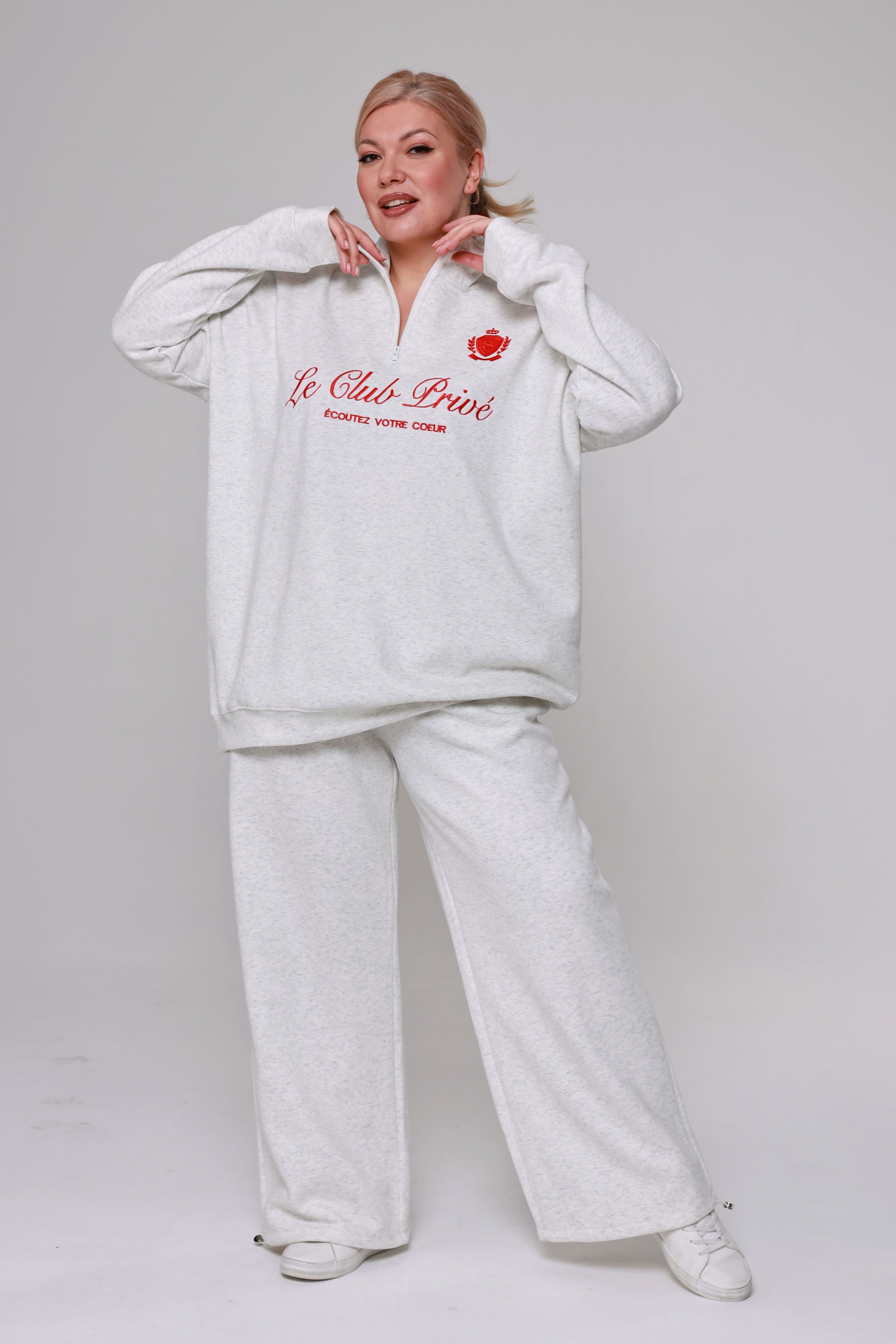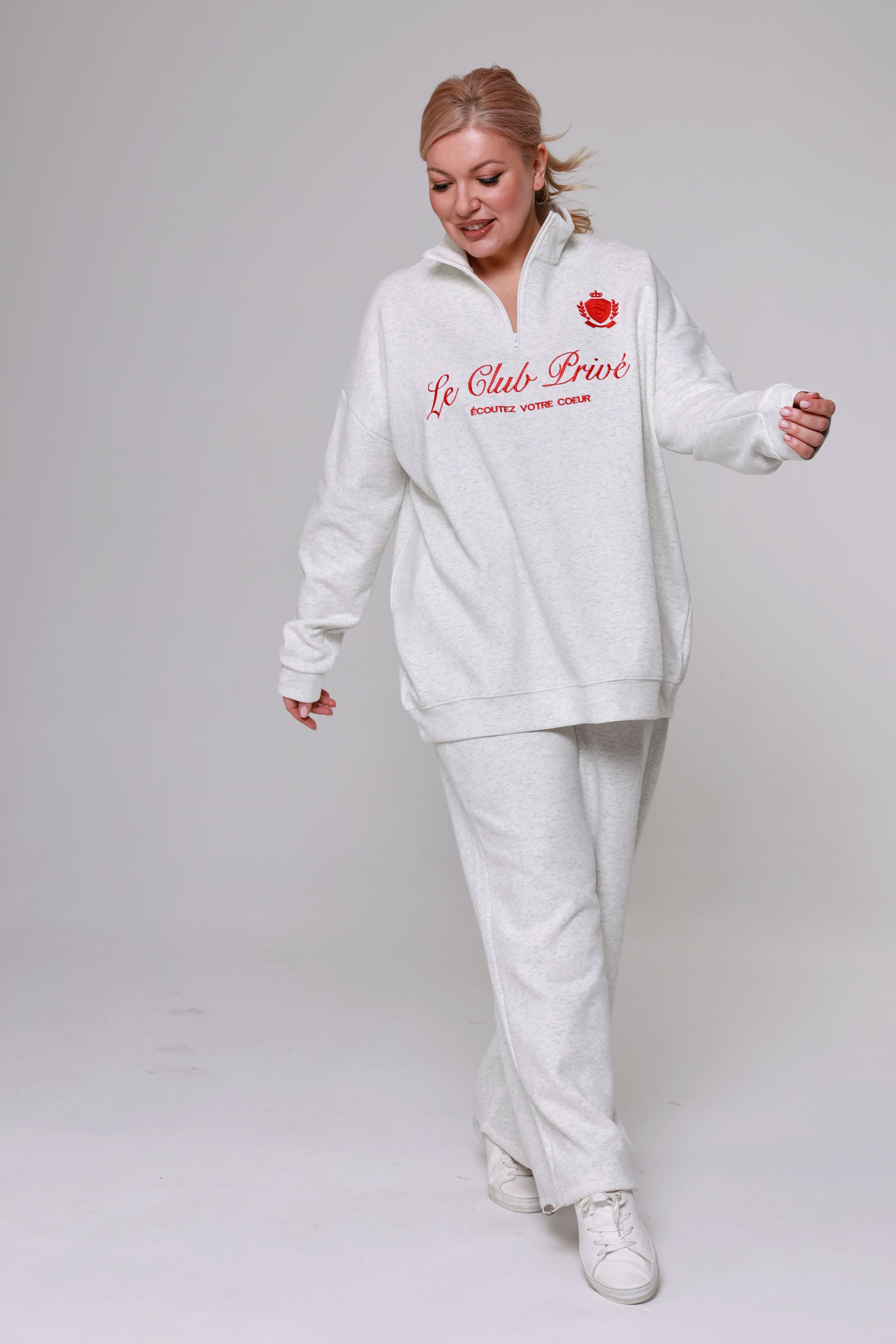 Спортивный костюм из высококачественного трикотажа состоит из поло и брюк. удобное поло имеет круглый вырез, который дополнен отложным воротом. на груди короткая молния. рукава с широкой спущенной проймой полной длины по низу оформлены манжетами. удобные и мягкие манжеты не будут растягиваться и доставлять дискомфорт. нижний край верха оформлен широкой притачной резинкой, что обеспечивает оптимальную посадку по фигуре. модные надписи на груди освежают образ. брюки отлично сидят за счет комфортной высокой посадки и эластичной резинки на поясе. по бокам глубокие карманы. удобный костюм подходит для долгих прогулок, активного отдыха и путешествий. свободный крой не будет сковывать ваши движения, обеспечит комфорт и свободу. составляющие костюма можно носить по отдельности, сочетая с другими вещами из вашего гардероба.