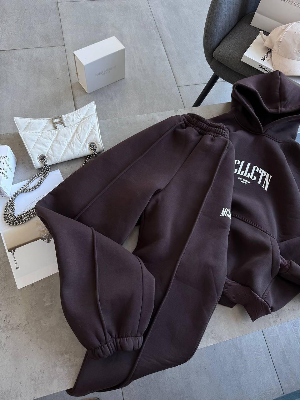 женский костюм с начёсом — стиль и комфорт в одном! уютная толстовка с капюшоном и лаконичные брюки. глубокий тёмный оттенок — подойдёт к любому образу. идеален для прогулок, домашнего уюта и активного отдыха.