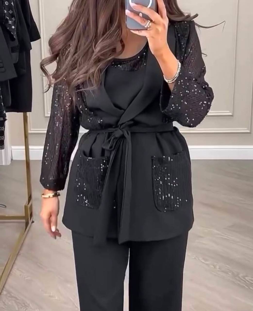 шикарные костюмчики тройка с пайетками идеально подойдут для любого торжественного случая, будь то свадьба, корпоратив или вечеринка! эти костюмы созданы для того чтобы вы чувствовали себя уверенно и элегантно! Ткань: креп и пайетки (пояс в комплекте)