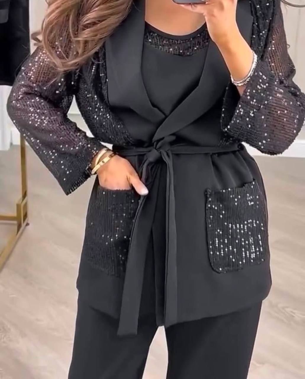 шикарные костюмчики тройка с пайетками идеально подойдут для любого торжественного случая, будь то свадьба, корпоратив или вечеринка! эти костюмы созданы для того чтобы вы чувствовали себя уверенно и элегантно! Ткань: креп и пайетки (пояс в комплекте)