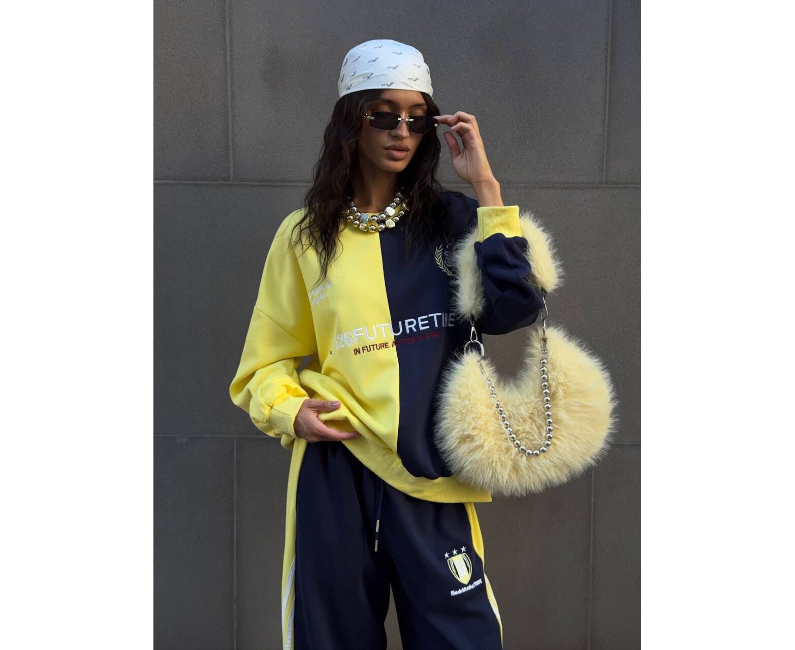 стильный утепленный костюм в оверсайз-посадке с яркими акцентами и трендовыми расцветками.