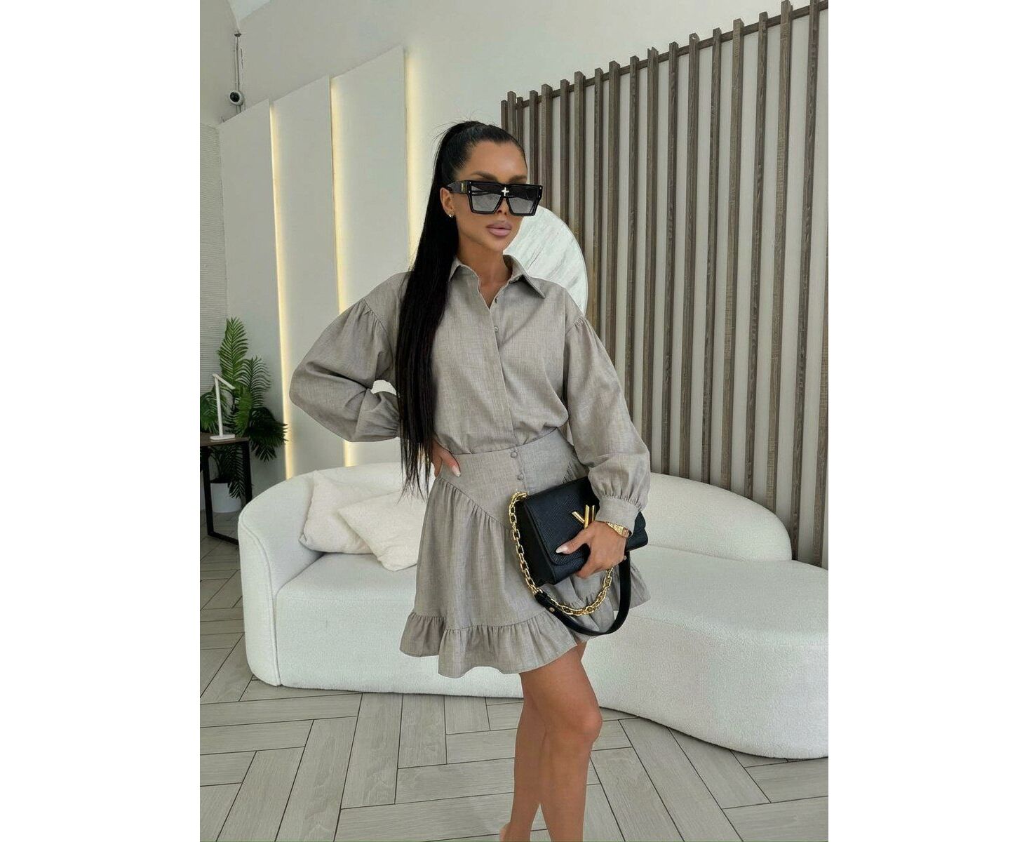 женский костюм двойка рубашка с юбкой свободной крой юбкой с боком молний Ткань:хлопок Размеры:(м-42.44)(l-44.46)